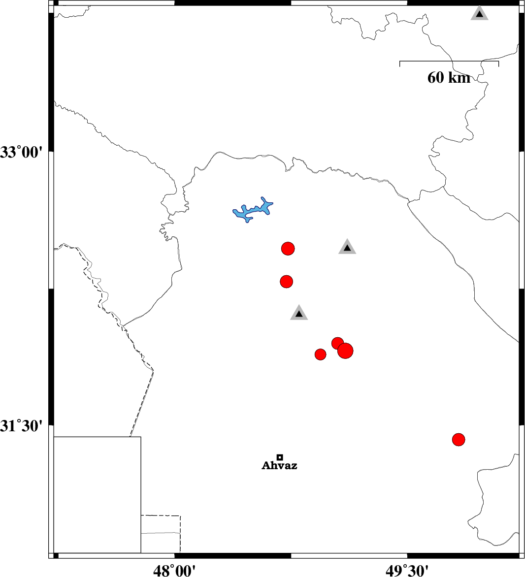 | 2020/11/07 | 09:43:48.8 | 13:13:48.8 | 32.29 | 48.72 | 10 | ML:3.7 | Khoozestan Province, 30 km North-West of Shushtar | ||