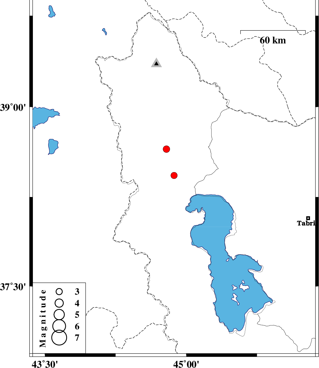 | 2020/10/26 | 02:34:20.5 | 06:04:20.5 | 38.65 | 44.79 | 10 | ML:3.2 | Azarbaijan Gharbi Province, 17 km -West of Khoy |