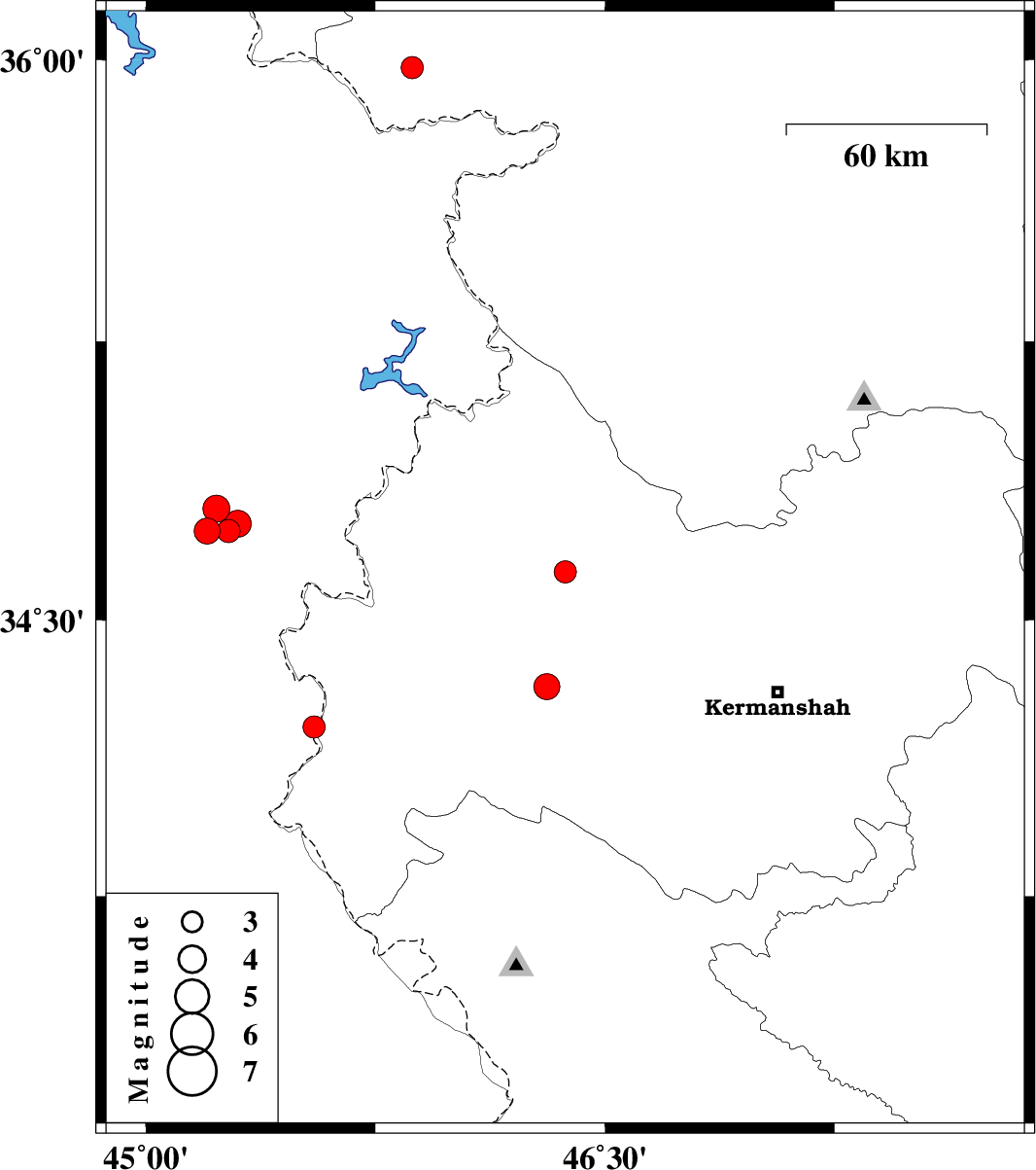 | 2020/11/04 | 20:36:47.1 | 00:06:47.1 | 34.63 | 46.37 | 10 | ML:3.3 | Kermanshah Province, 23 km South of Javanrud | ||