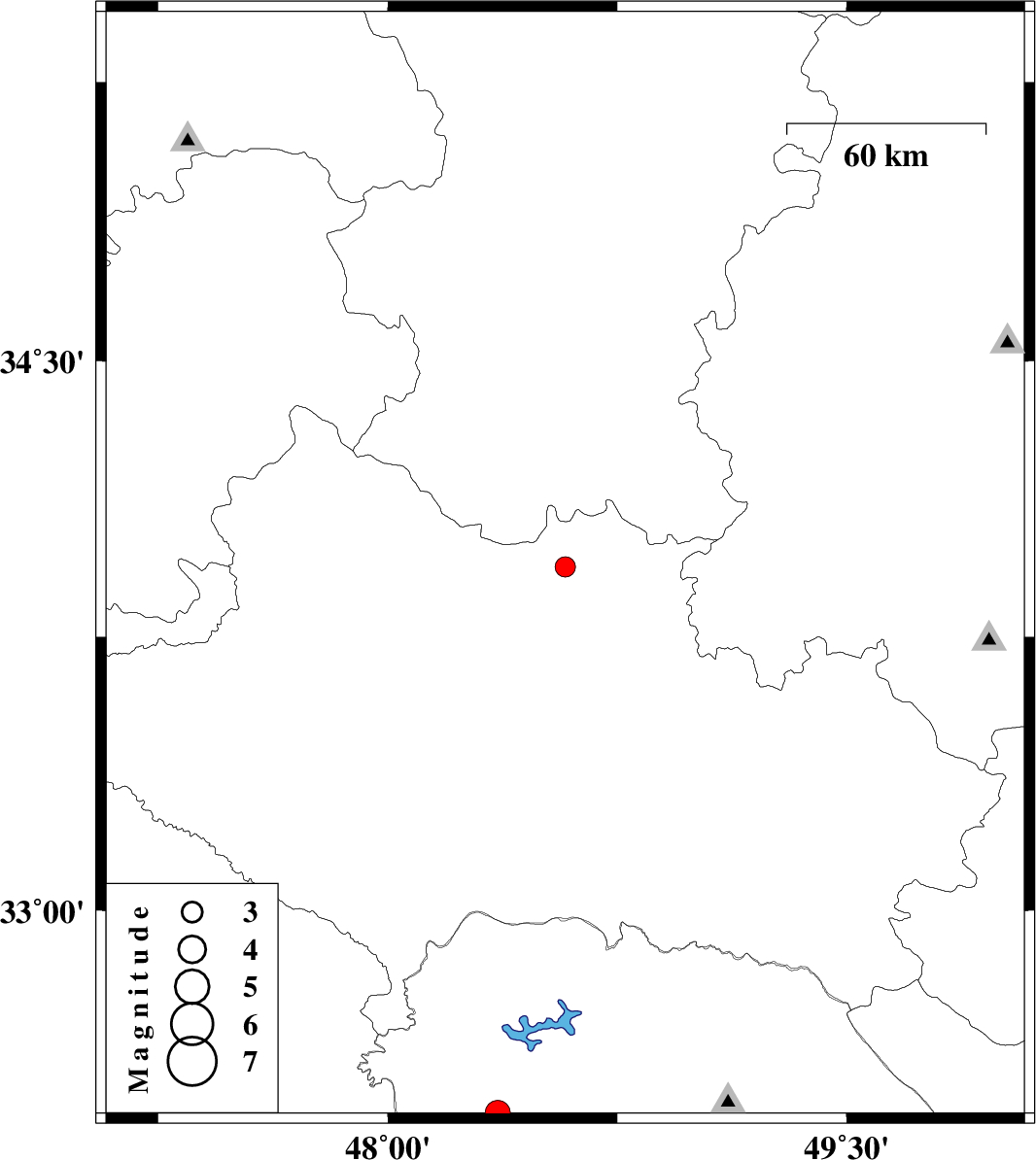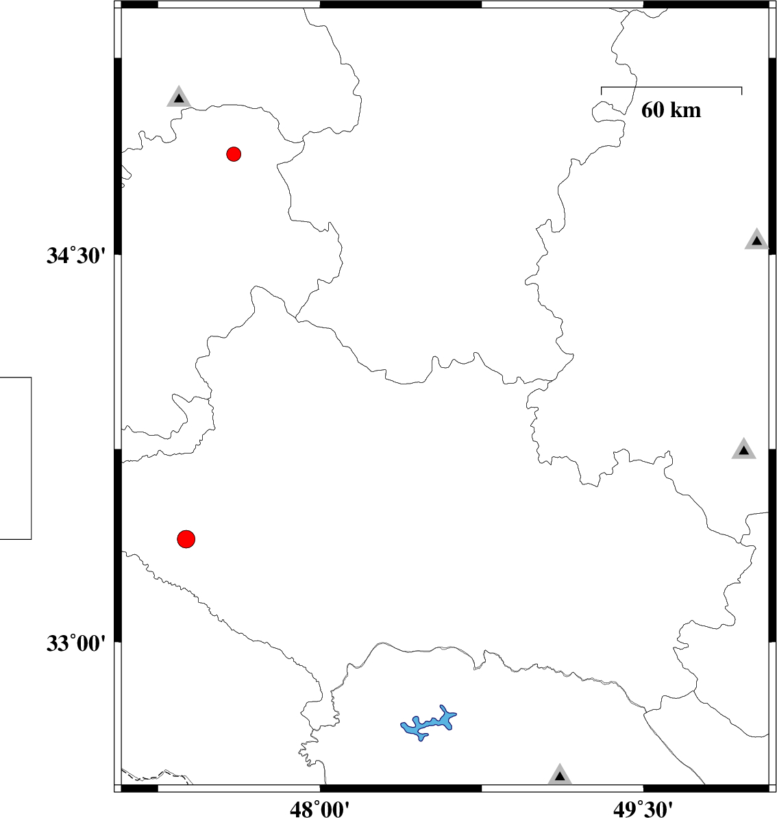 | 2020/10/13 | 13:21:02.2 | 16:51:02.2 | 33.94 | 48.58 | 10 | ML:3 | Lorestan Province, 17 km -West of Borujerd | ||