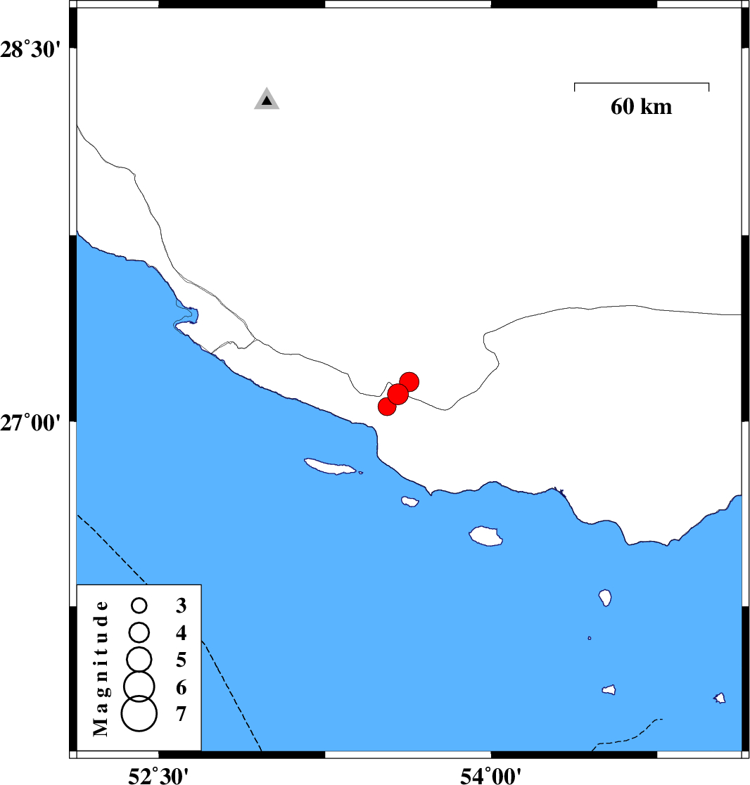 2020/11/15 22:06:31.1 01:36:31.1 27.0653.5328 ML:3.7 Hormozgan Province, 47 km South-East of Lamerd