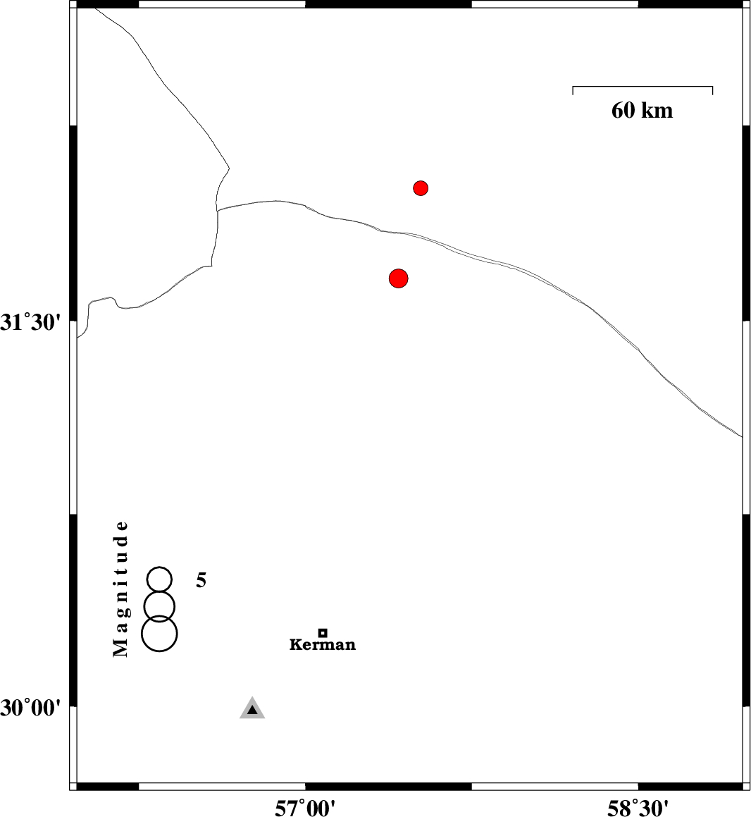 2020/11/25 | 21:47:52.3 | 01:17:52.3 | 30.85 | 57.37 | 10 | ML:3.8 | Kerman Province, 77 km -East of Zarand |