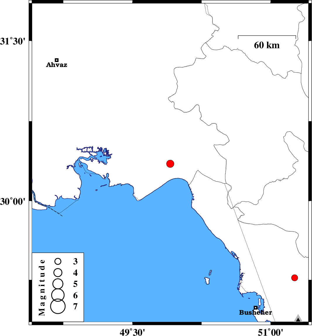 | 2020/11/26 | 12:48:16.2 | 16:18:16.2 | 29.27 | 51.26 | 10 | ML:3.1 | Bushehr Province, 5 km of Borazjan |