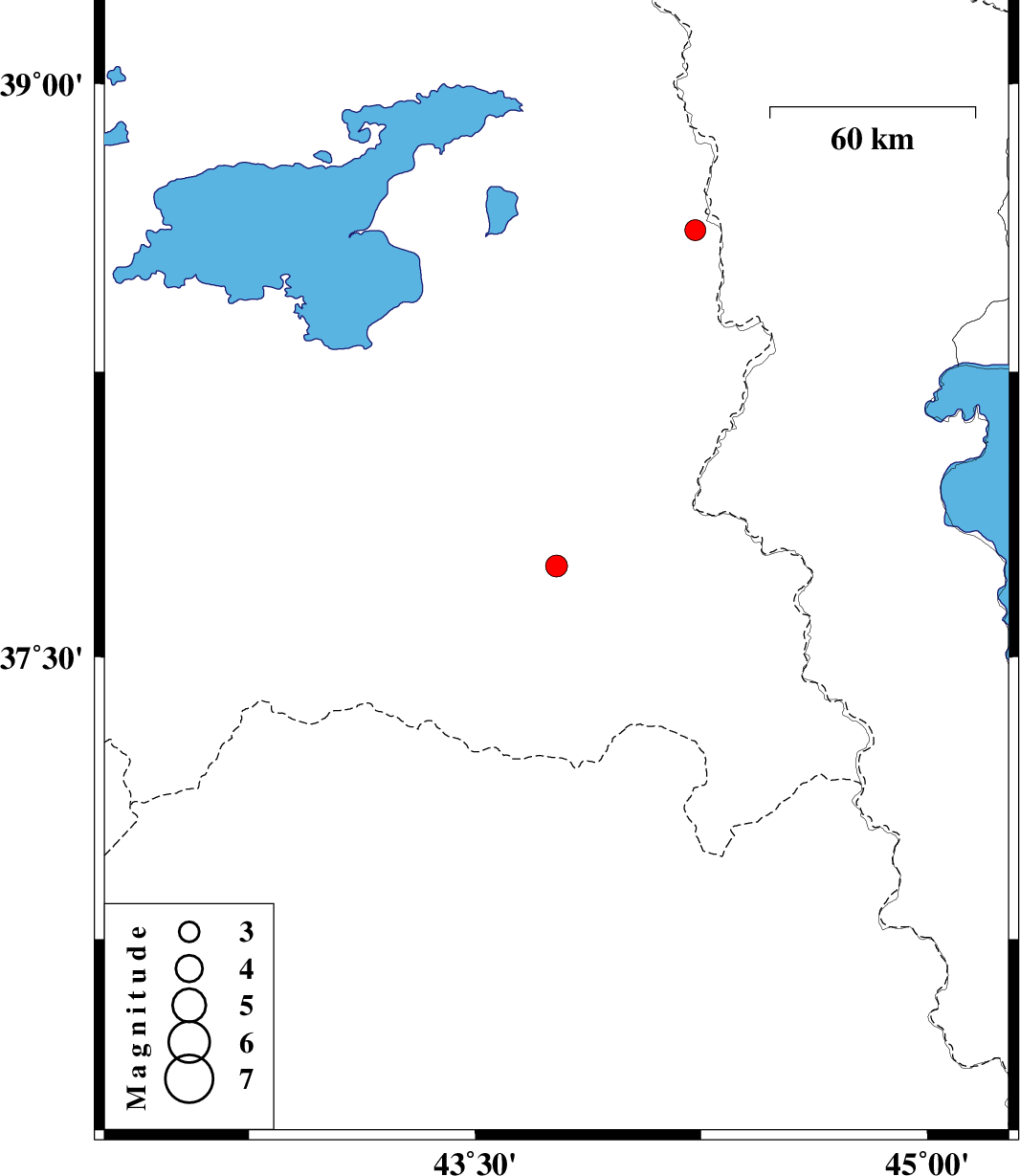 | 2020/11/27 | 06:05:01.3 | 09:35:01.3 | 38.62 | 44.23 | 10 | ML:3.1 | Turkey, 52 km South-West of Seyah Cheshmah |
