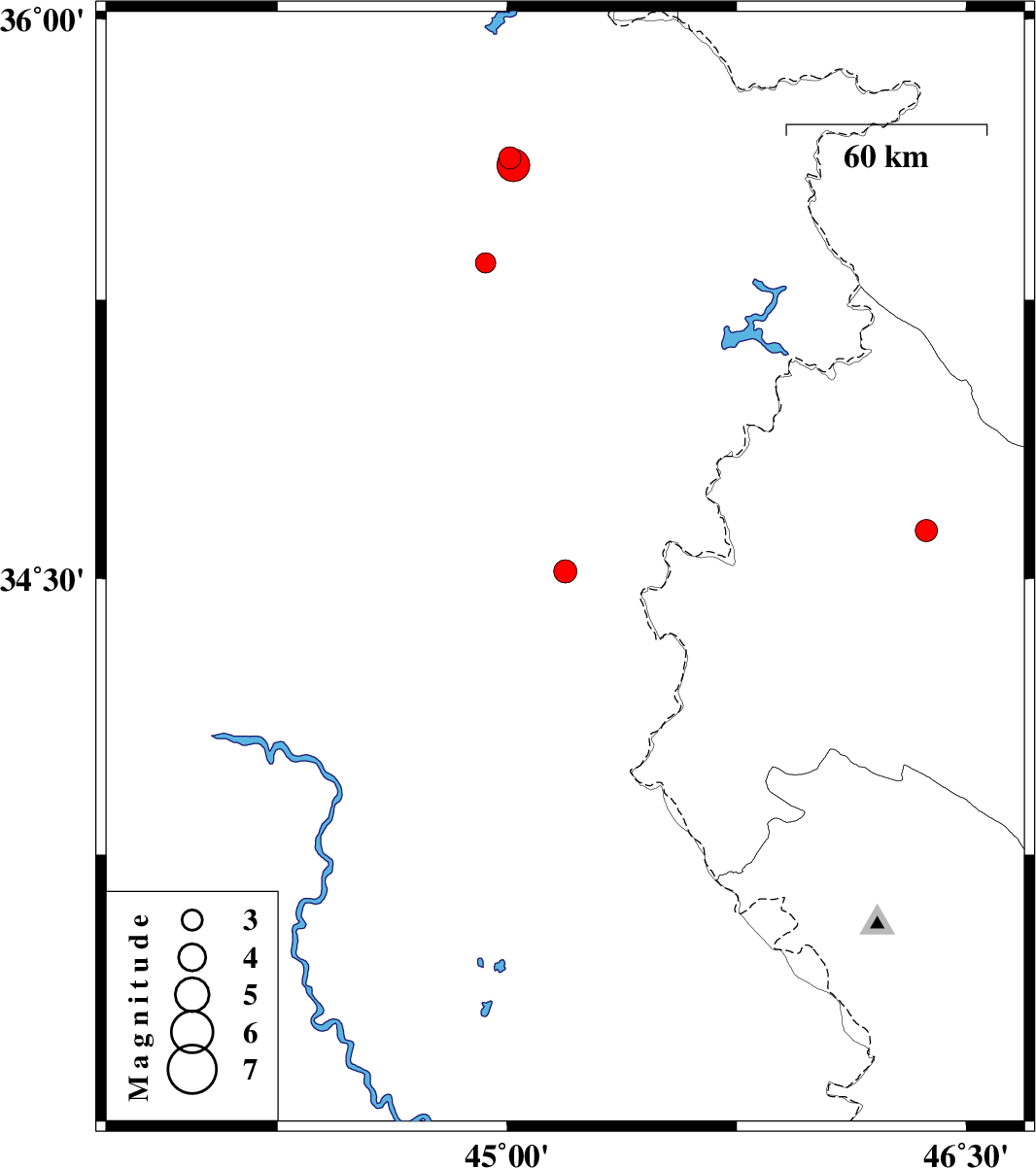 | 2020/11/09 | 23:24:31.4 | 02:54:31.4 | 35.63 | 45.01 | 10 | ML:3.3 | Iraq, 40 km -West of Sulaymaniyah | ||