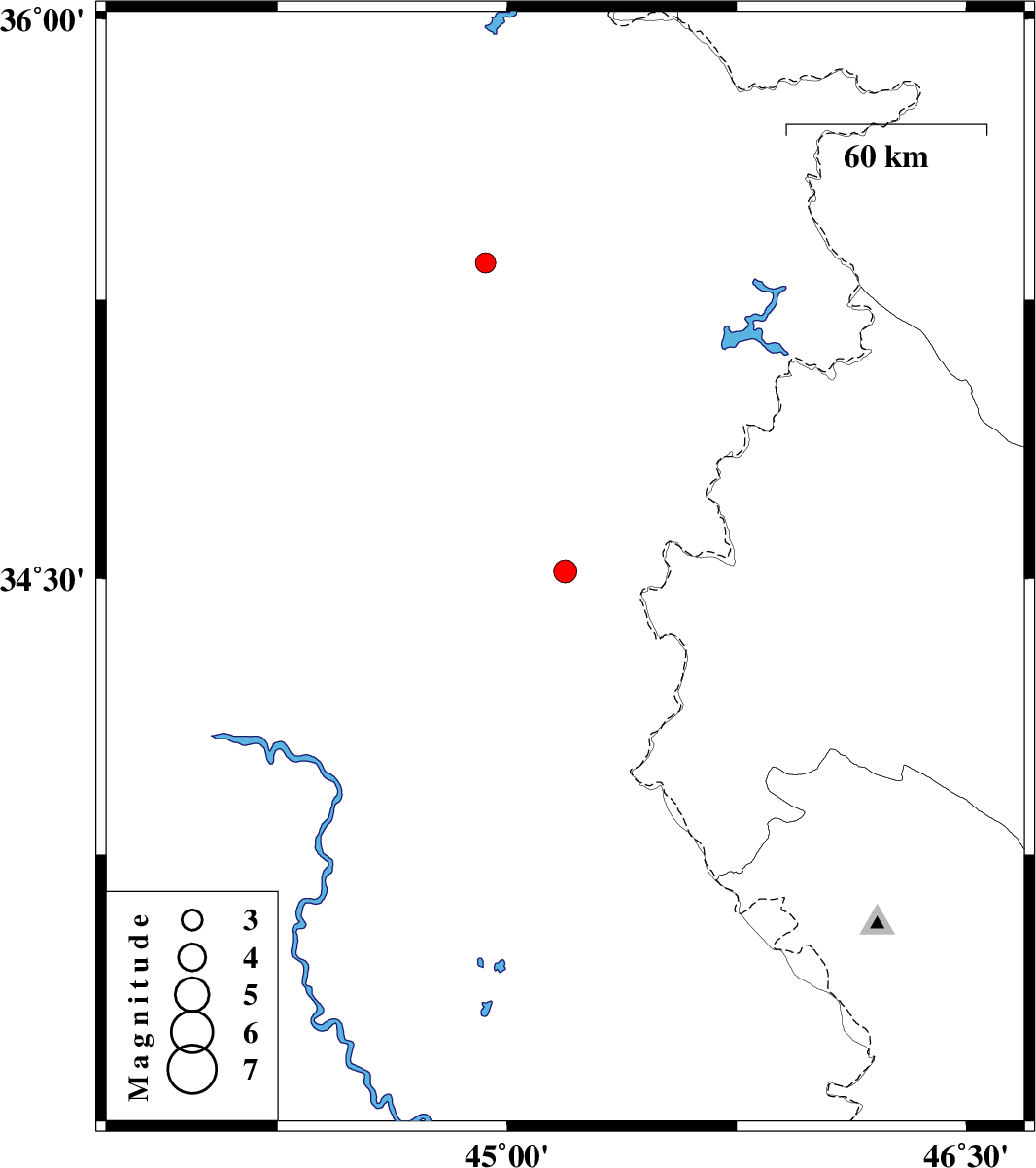 | 2020/11/28 | 08:17:41.2 | 11:47:41.2 | 34.52 | 45.19 | 15 | ML:3.4 | Iraq, 36 km -West of Qasr-E-Shirin |