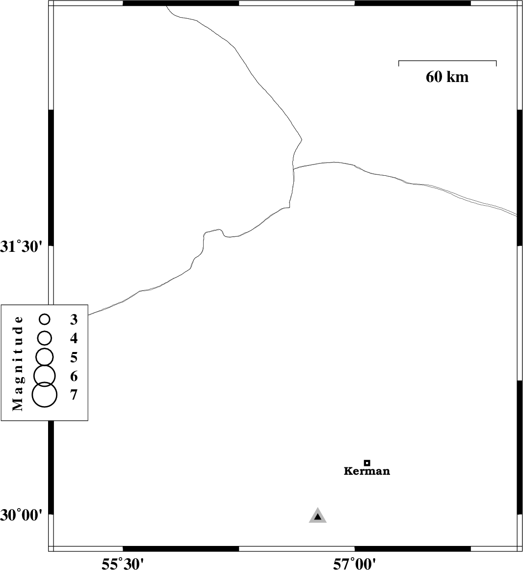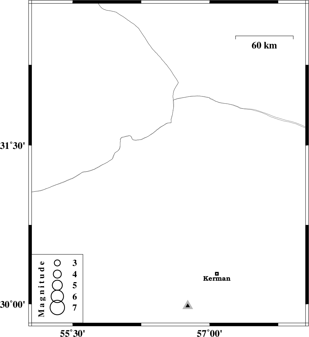 | 2020/12/12 | 06:28:32.0 | 09:58:32.0 | 31.32 | 56.55 | 10 | ML:3.4 | Kerman Province, 26 km -West of Ravar |