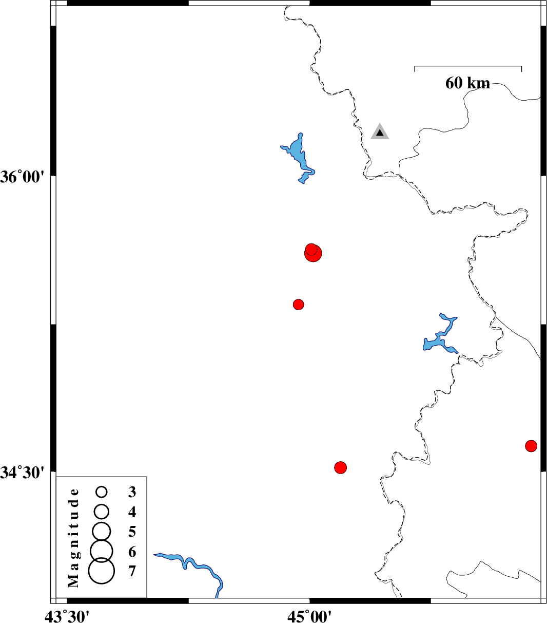 | 2020/11/09 | 23:24:31.4 | 02:54:31.4 | 35.63 | 45.01 | 10 | ML:3.3 | Iraq, 40 km -West of Sulaymaniyah | ||