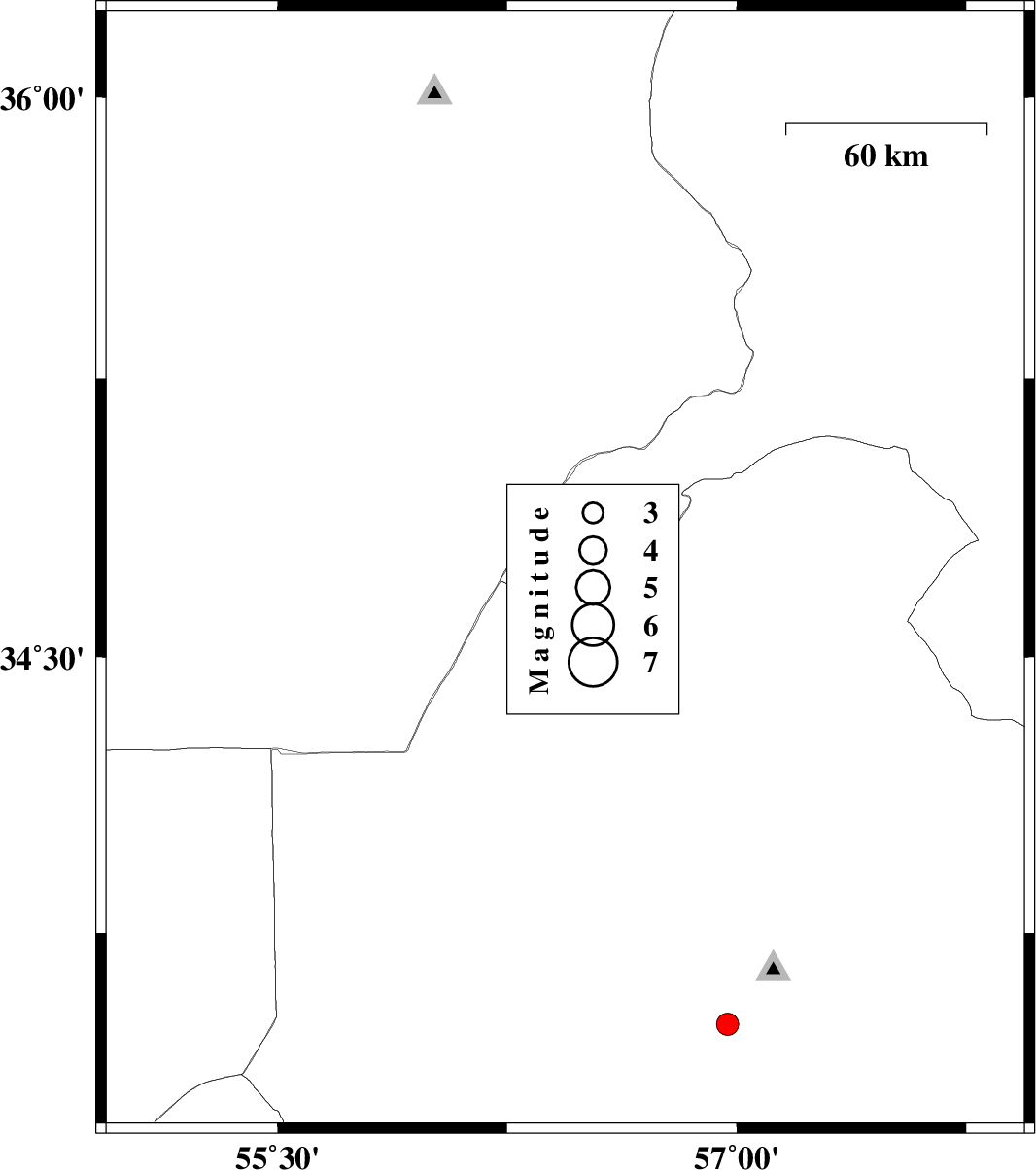 | 2020/12/15 | 08:10:23.5 | 11:40:23.5 | 34.73 | 56.44 | 13 | ML:3.1 | Khorasan(center) Province, 133 km North-West of Tabas |