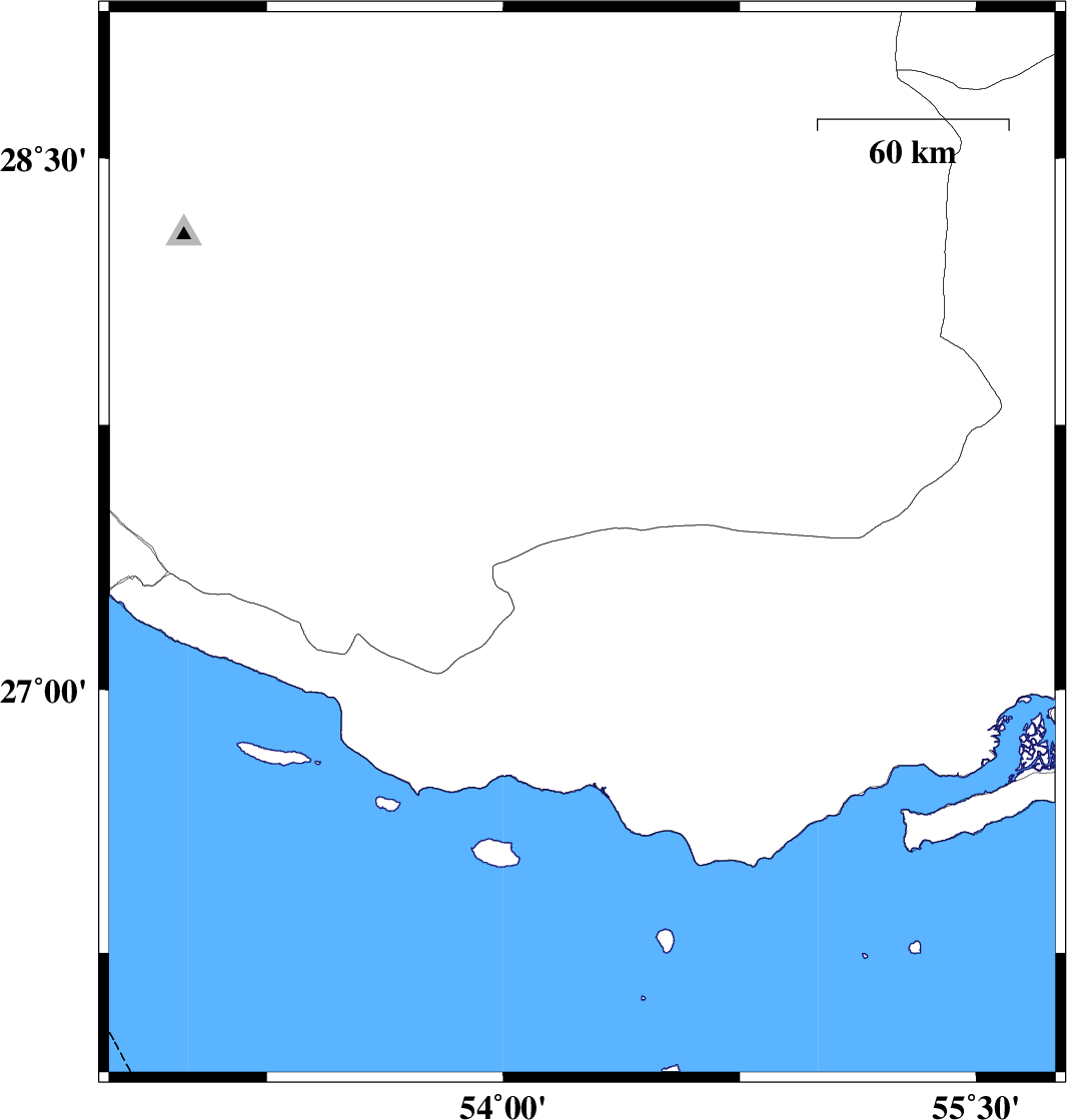 | 2020/12/16 | 04:27:17.8 | 07:57:17.8 | 27.41 | 54.25 | 19 | ML:3.2 | Hormozgan Province, 26 km North-West of Bastak | ||