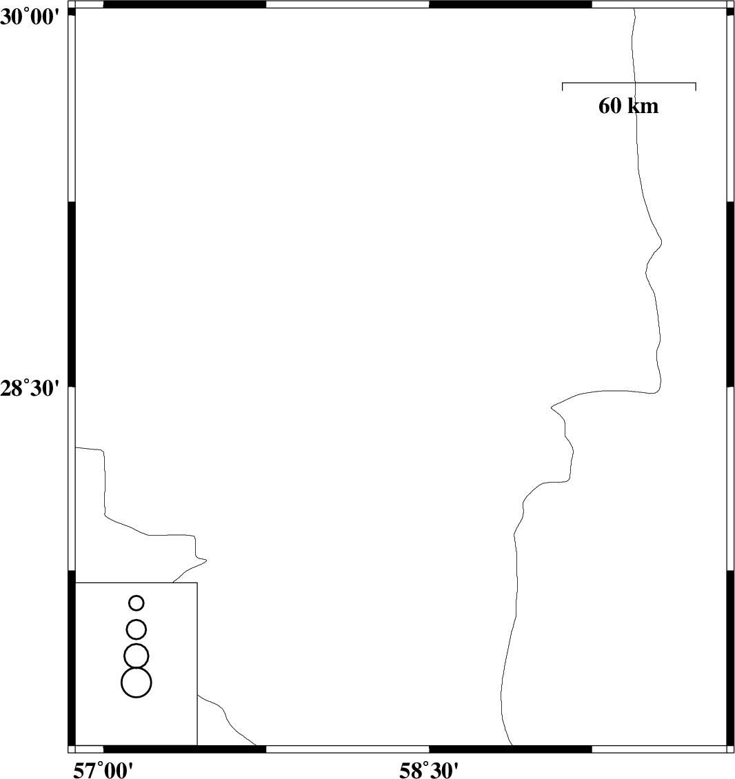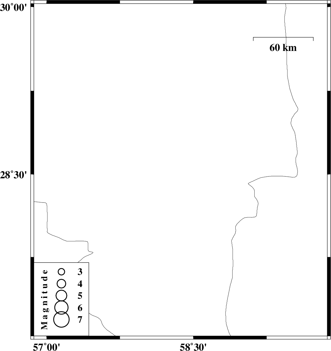 | 2020/12/22 | 21:29:46.2 | 00:59:46.2 | 28.53 | 58.37 | 10 | ML:3.3 | Kerman Province, 64 km South of Bam |