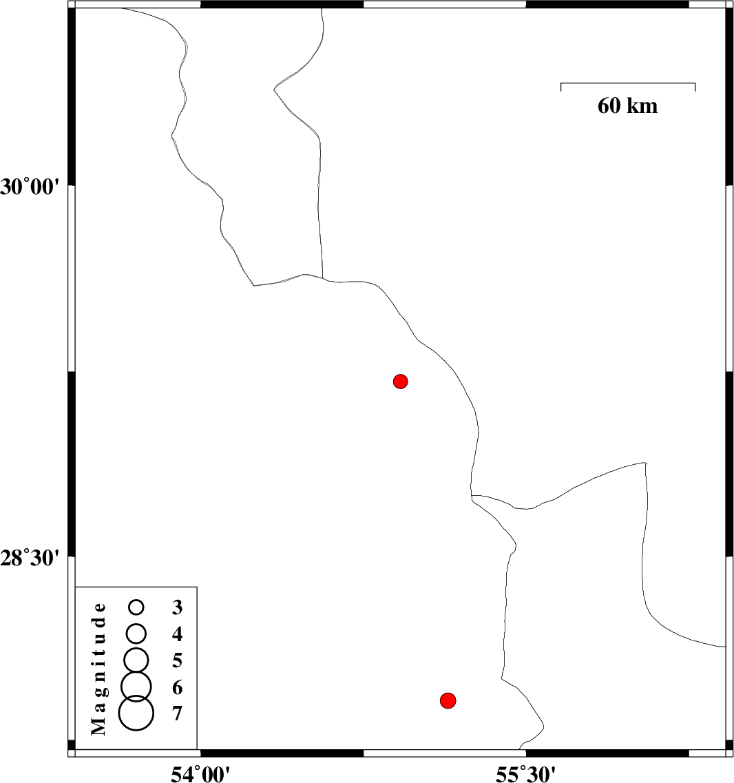 | 2020/12/26 | 12:11:47.4 | 15:41:47.4 | 27.91 | 55.14 | 10 | ML:3.3 | Fars Province, 83 km North-East of Lar |