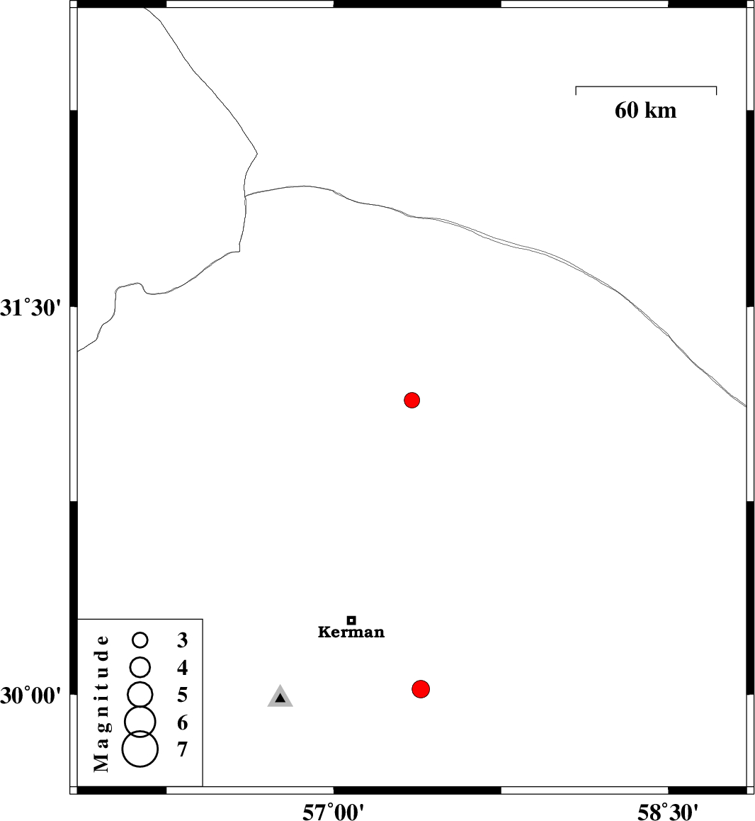 | 2020/11/03 | 19:38:23.8 | 23:08:23.8 | 30.02 | 57.39 | 10 | ML:3.5 | Kerman Province, 42 km South-East of Kerman | ||