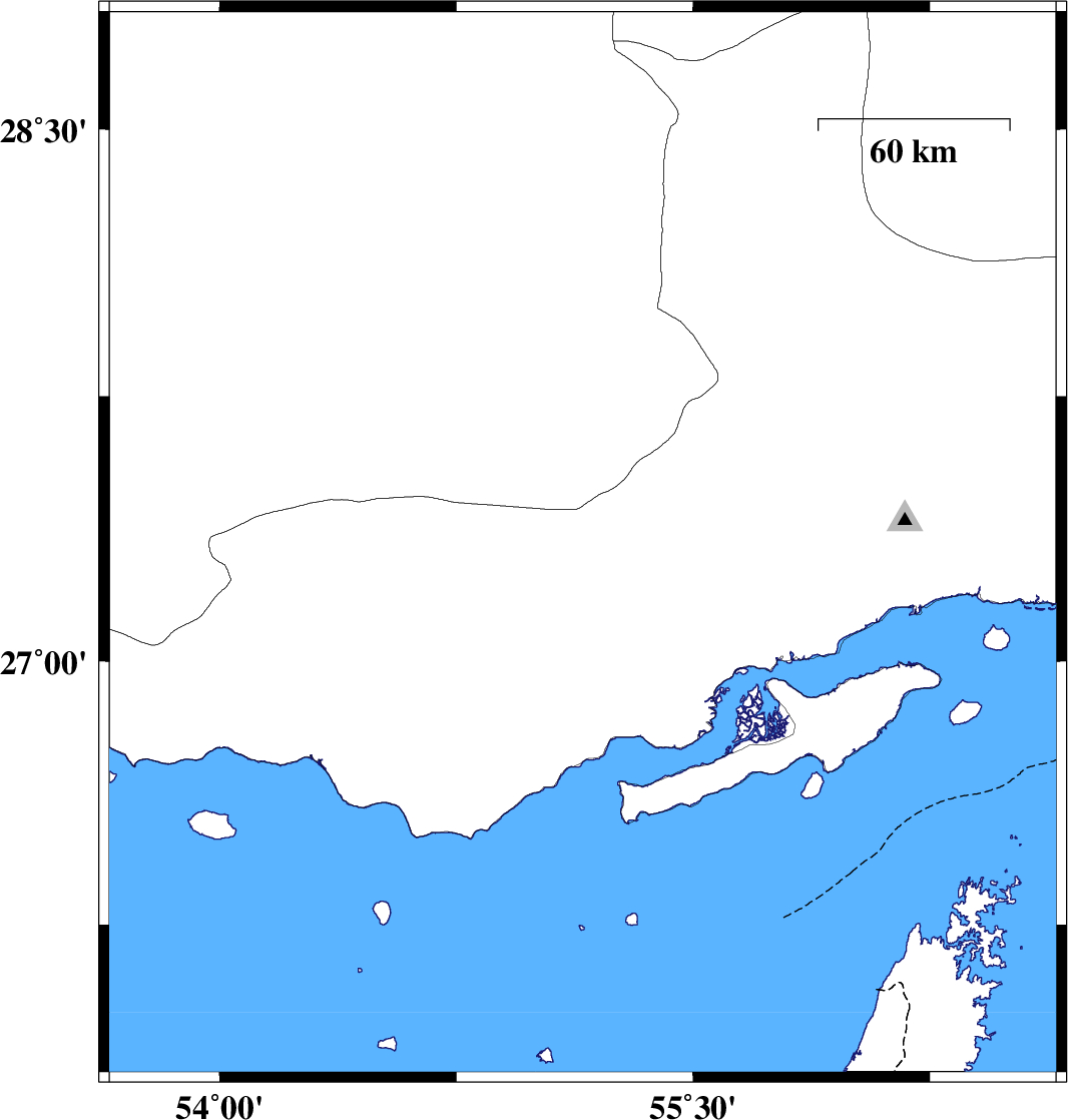 | 2020/12/11 | 20:47:54.7 | 00:17:54.7 | 27.43 | 54.16 | 10 | ML:4.5 | Fars Province, 33 km South-West of Lar | ||