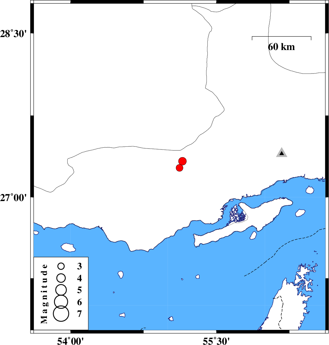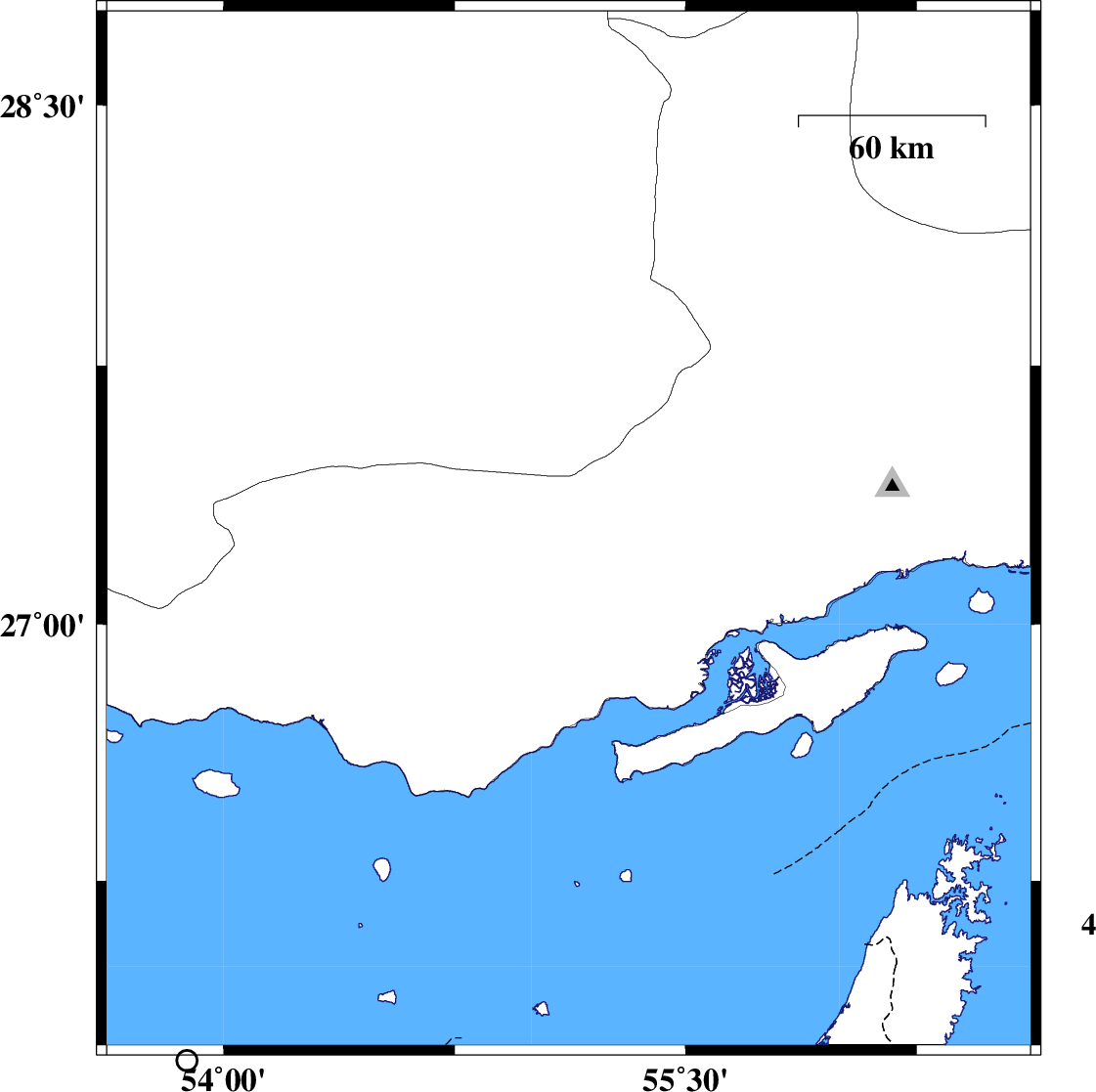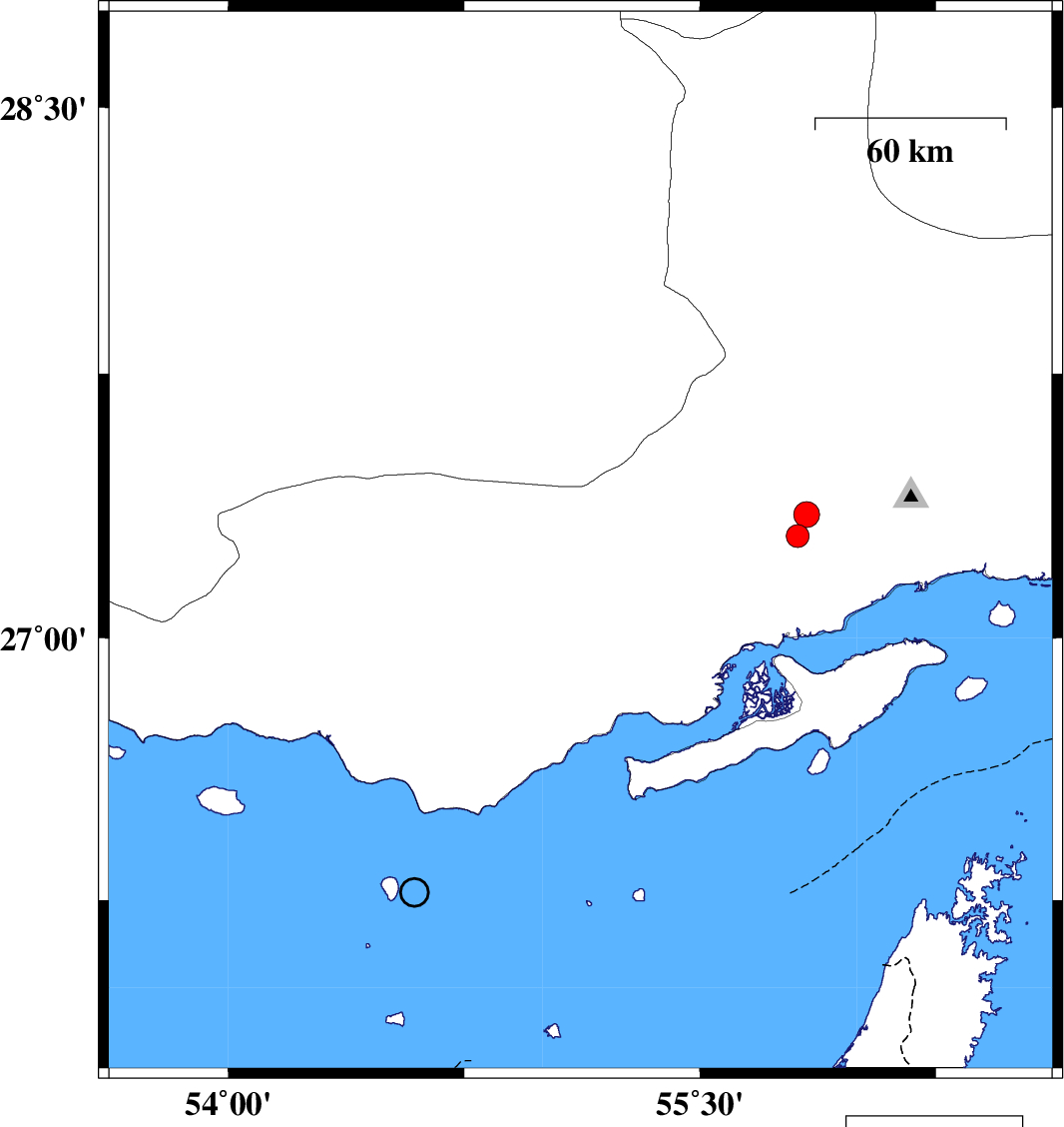 | 2021/01/03 | 09:43:46.4 | 13:13:46.4 | 27.33 | 55.15 | 10 | ML:3.7 | Hormozgan Province, 79 km North-East of Bastak |