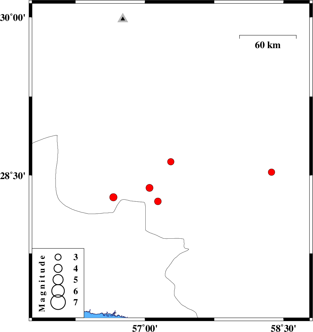 | 2020/12/22 | 21:29:46.2 | 00:59:46.2 | 28.53 | 58.37 | 10 | ML:3.3 | Kerman Province, 64 km South of Bam |
