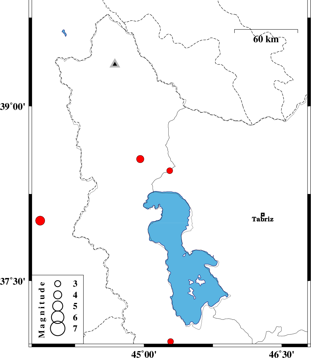 | 2021/01/09 | 15:42:39.4 | 19:12:39.4 | 38.45 | 45.28 | 10 | ML:2.9 | Azarbaijan Gharbi Province, 31 km South-East of Khoy | ||