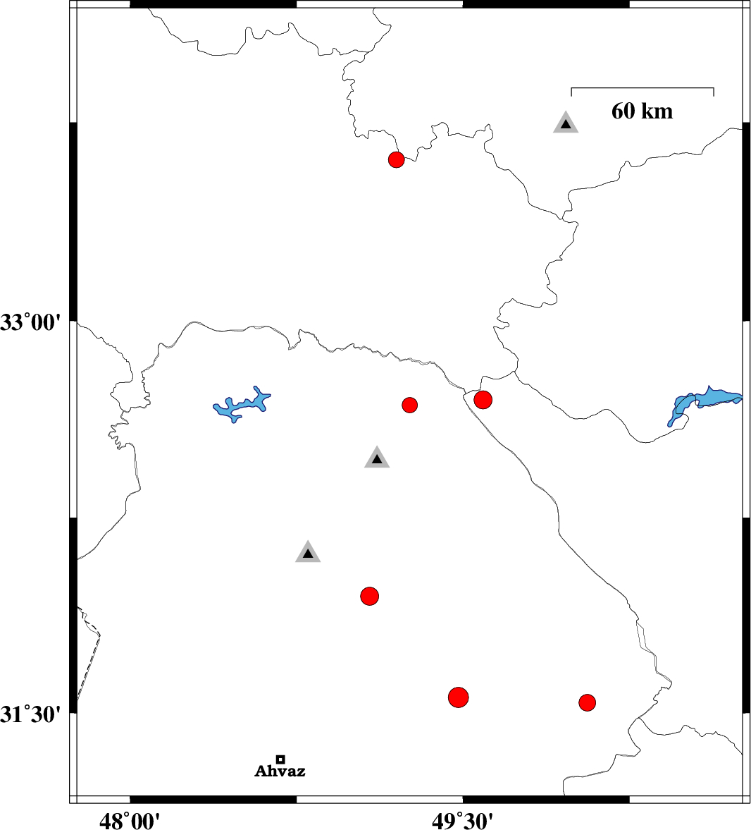 | 2020/12/27 | 15:56:52.3 | 19:26:52.3 | 31.56 | 49.48 | 10 | ML:4.1 | Khoozestan Province, 34 km North-West of Ramhormoz | ||