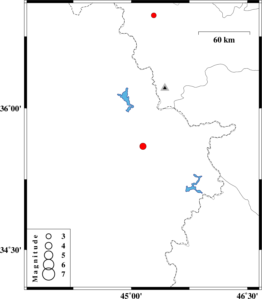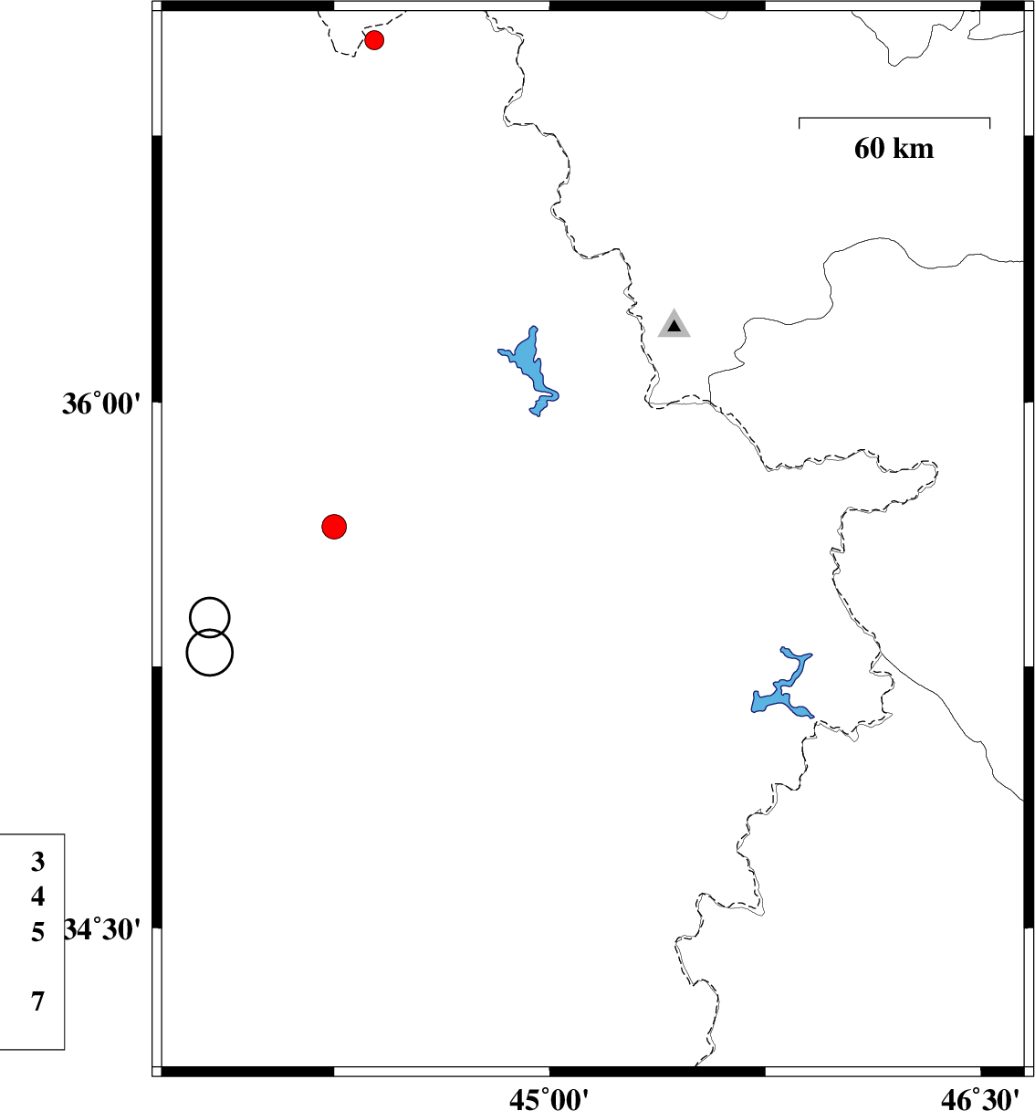 | 2021/01/10 | 23:00:46.9 | 02:30:46.9 | 35.6 | 45.15 | 10 | ML:3.8 | Iraq, 27 km -West of Sulaymaniyah | ||
