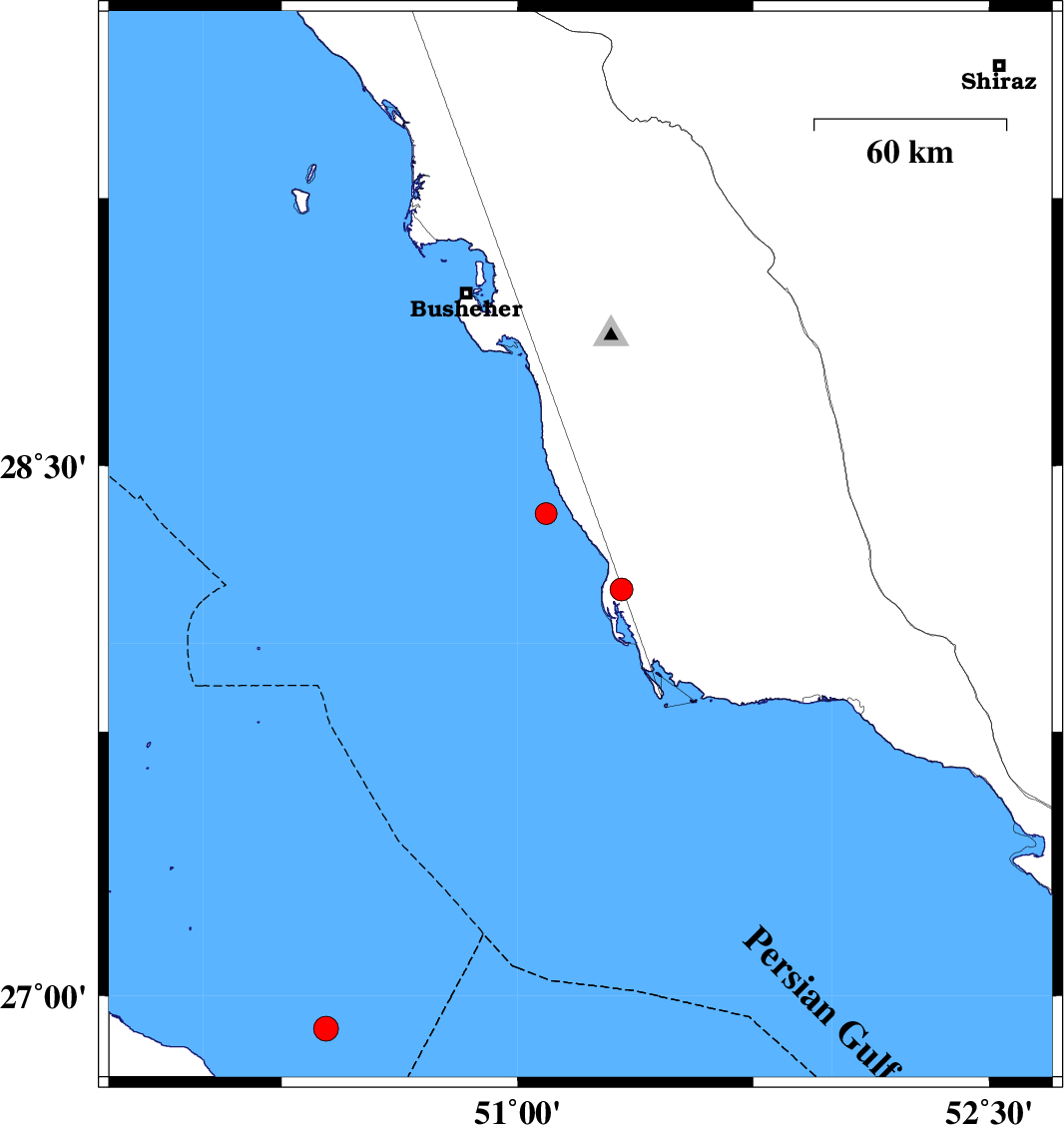 | 2021/01/15 | 20:06:54.6 | 23:36:54.6 | 28.27 | 51.2 | 10 | ML:3.5 | Persian Gulf, 46 km South-West of Khormog | ||