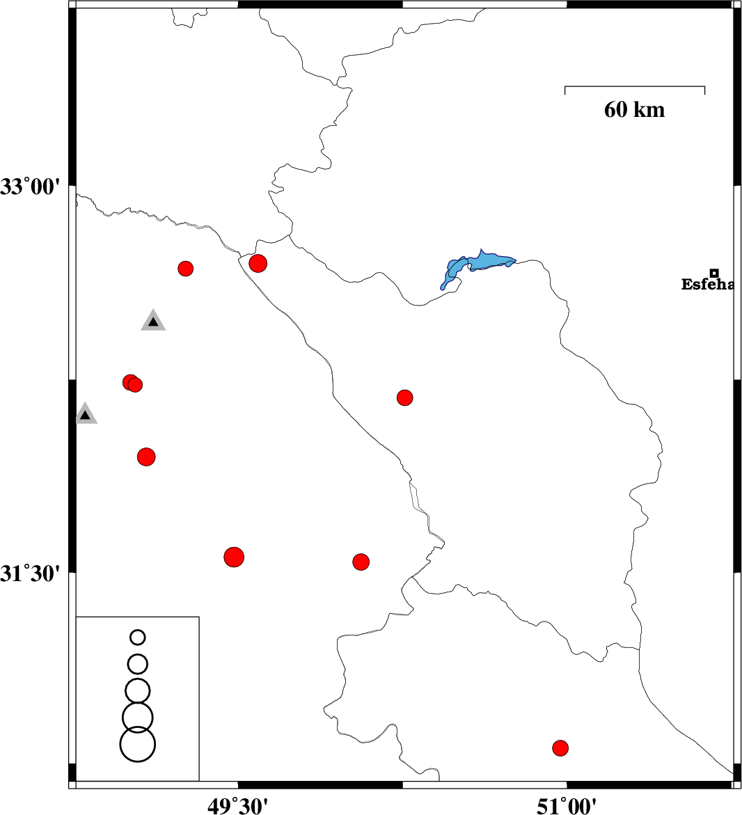 | 2020/12/22 | 17:25:32.3 | 20:55:32.3 | 32.7 | 49.59 | 10 | ML:3.7 | Chaharmahal Bakhtiari Province, 55 km South-West of Fereydunshahr |