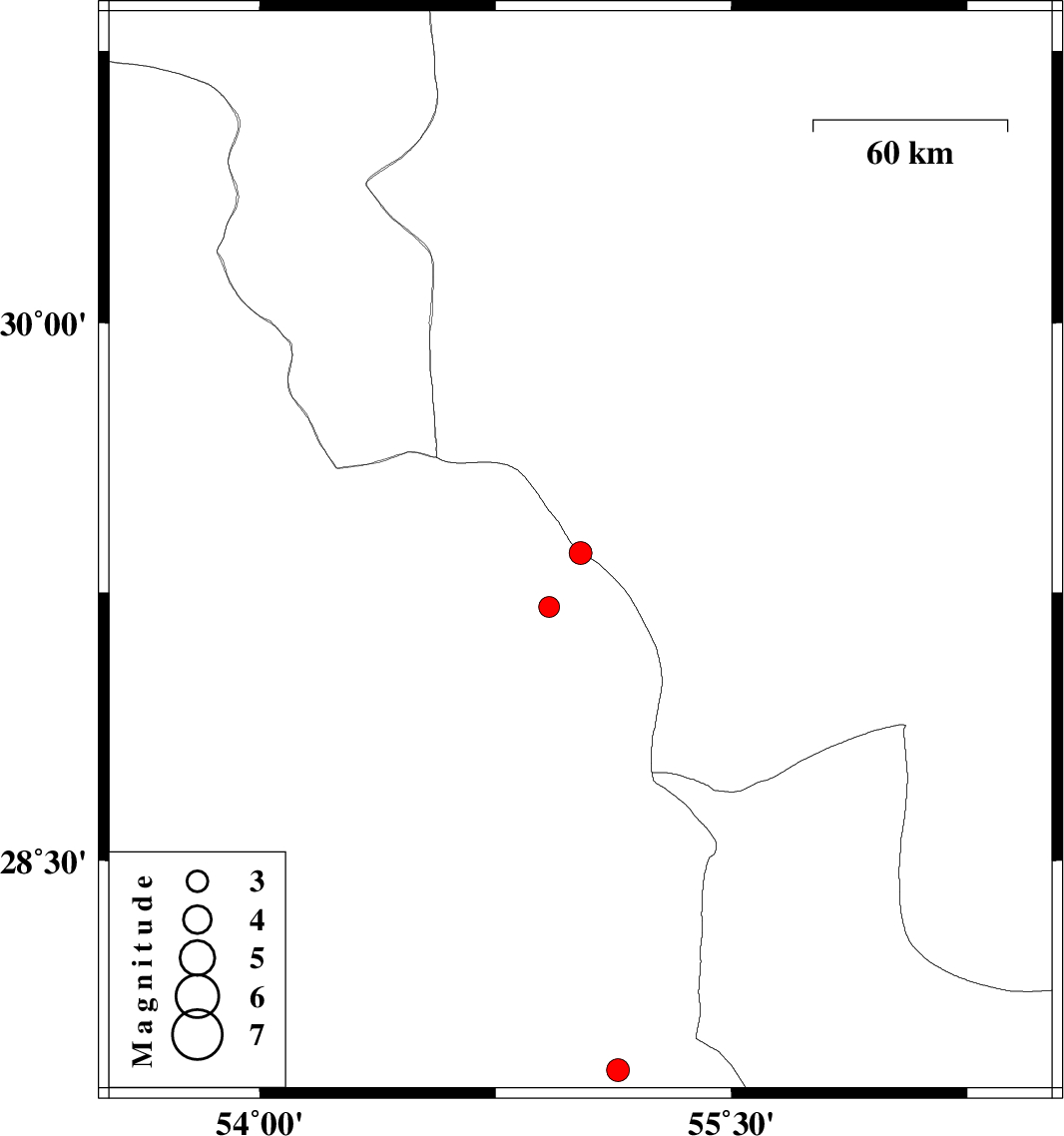 | 2020/12/27 | 00:26:46.0 | 03:56:46.0 | 29.21 | 54.92 | 10 | ML:3 | Fars Province, 58 km -East of Neyriz | ||