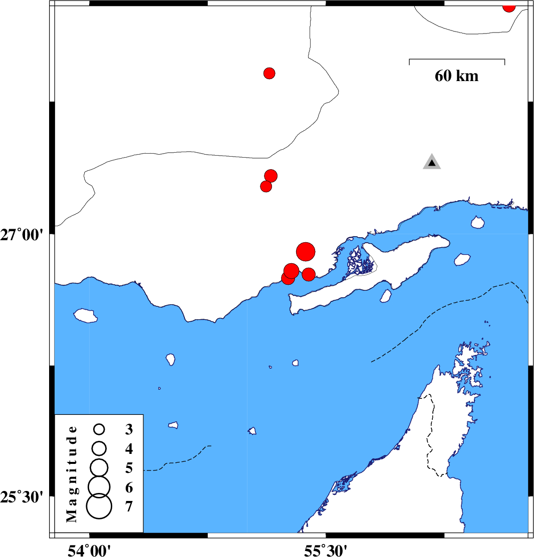 | 2021/01/17 | 15:18:53.7 | 18:48:53.7 | 26.77 | 55.39 | 15 | ML:3.8 | Hormozgan Province, 60 km North-East of Bandar-e lengeh | ||