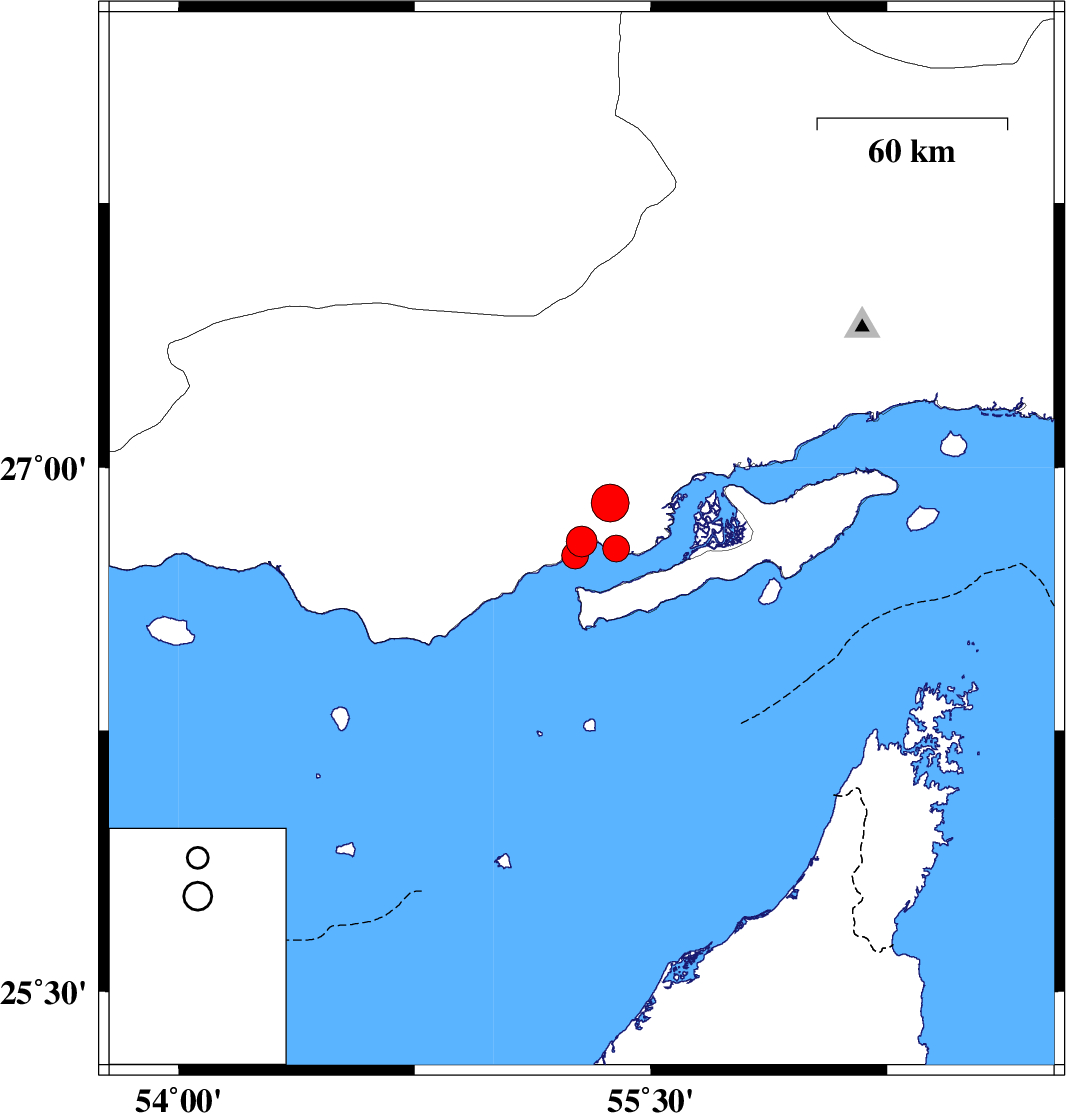 | 2021/01/15 | 21:31:05.9 | 01:01:05.9 | 26.9 | 55.37 | 29 | Mb:5.4 | Hormozgan Province, 66 km North-East of Bandar-e lengeh |