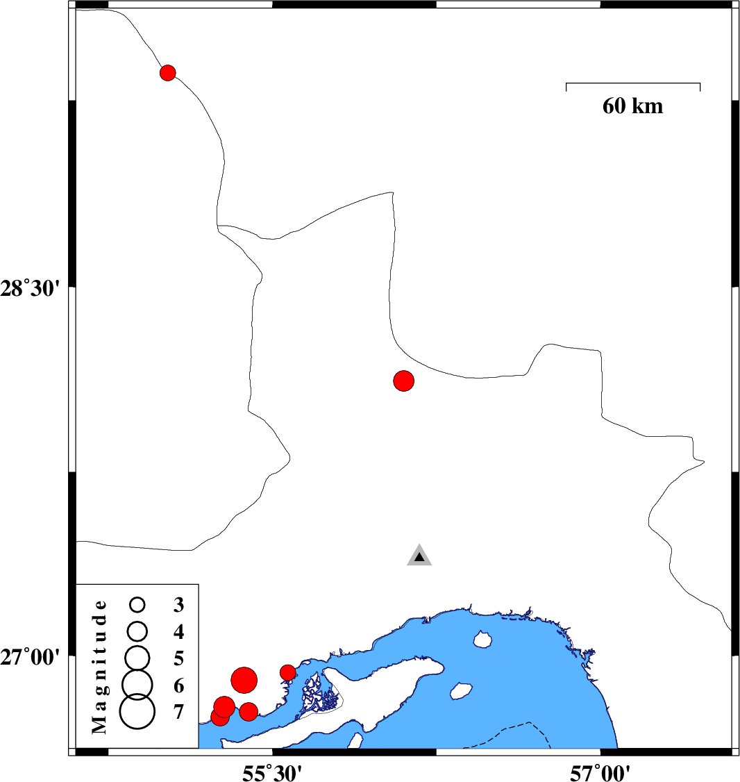 | 2021/01/17 | 15:18:53.7 | 18:48:53.7 | 26.77 | 55.39 | 15 | ML:3.8 | Hormozgan Province, 60 km North-East of Bandar-e lengeh | ||