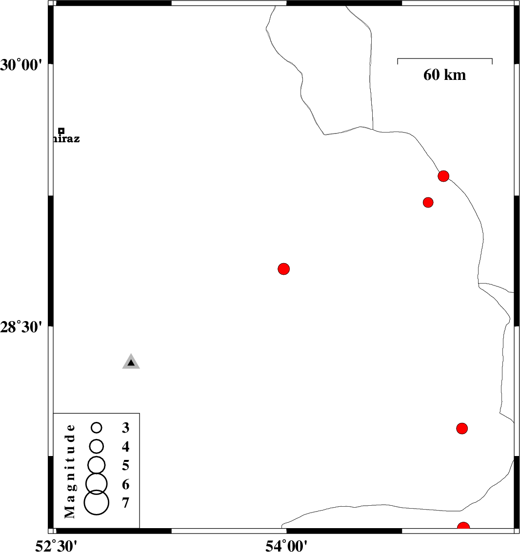 | 2021/01/18 | 08:28:29.4 | 11:58:29.4 | 28.83 | 53.98 | 10 | ML:3.4 | Fars Province, 34 km South of Estahban | ||