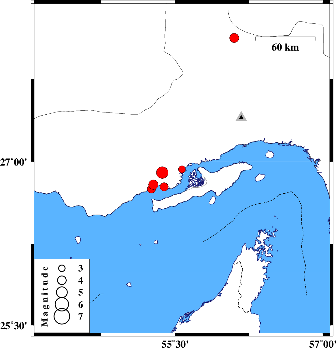 | 2021/01/17 | 15:18:53.7 | 18:48:53.7 | 26.77 | 55.39 | 15 | ML:3.8 | Hormozgan Province, 60 km North-East of Bandar-e lengeh | ||