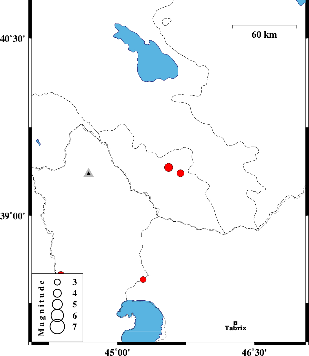 | 2021/01/09 | 15:42:39.4 | 19:12:39.4 | 38.45 | 45.28 | 10 | ML:2.9 | Azarbaijan Gharbi Province, 31 km South-East of Khoy |