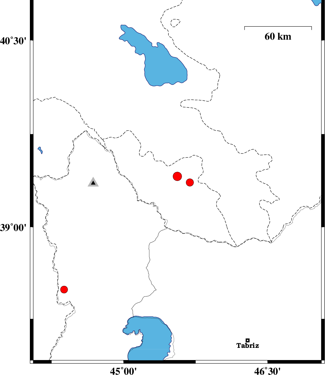 | 2021/01/22 | 06:22:59.9 | 09:52:59.9 | 38.49 | 44.38 | 10 | ML:3.4 | Azarbaijan Gharbi Province, 64 km South of Seyah Cheshmah | ||