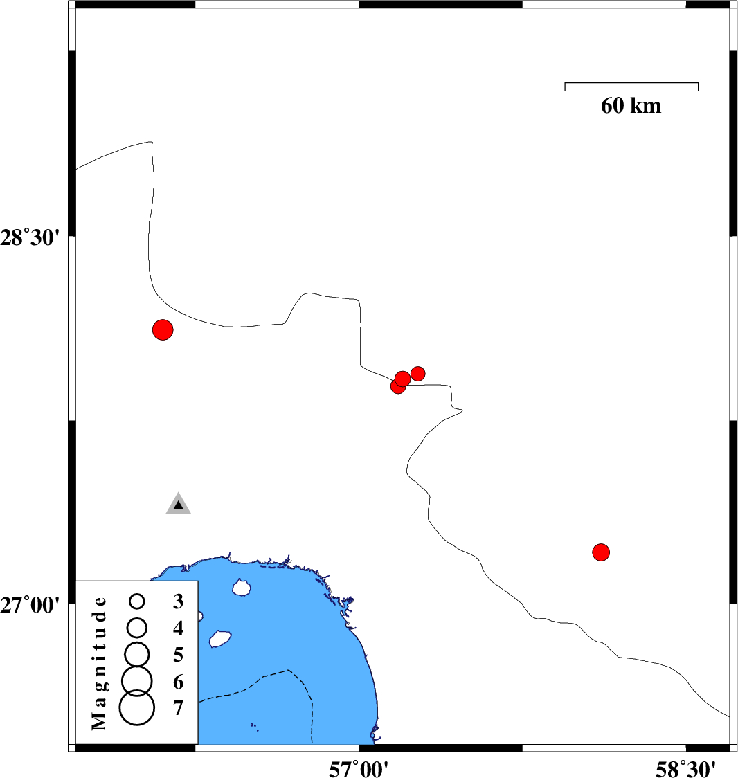 | 2021/01/25 | 20:23:48.1 | 23:53:48.1 | 27.94 | 57.27 | 10 | ML:3 | Kerman Province, 42 km -West of Kahnuj | ||