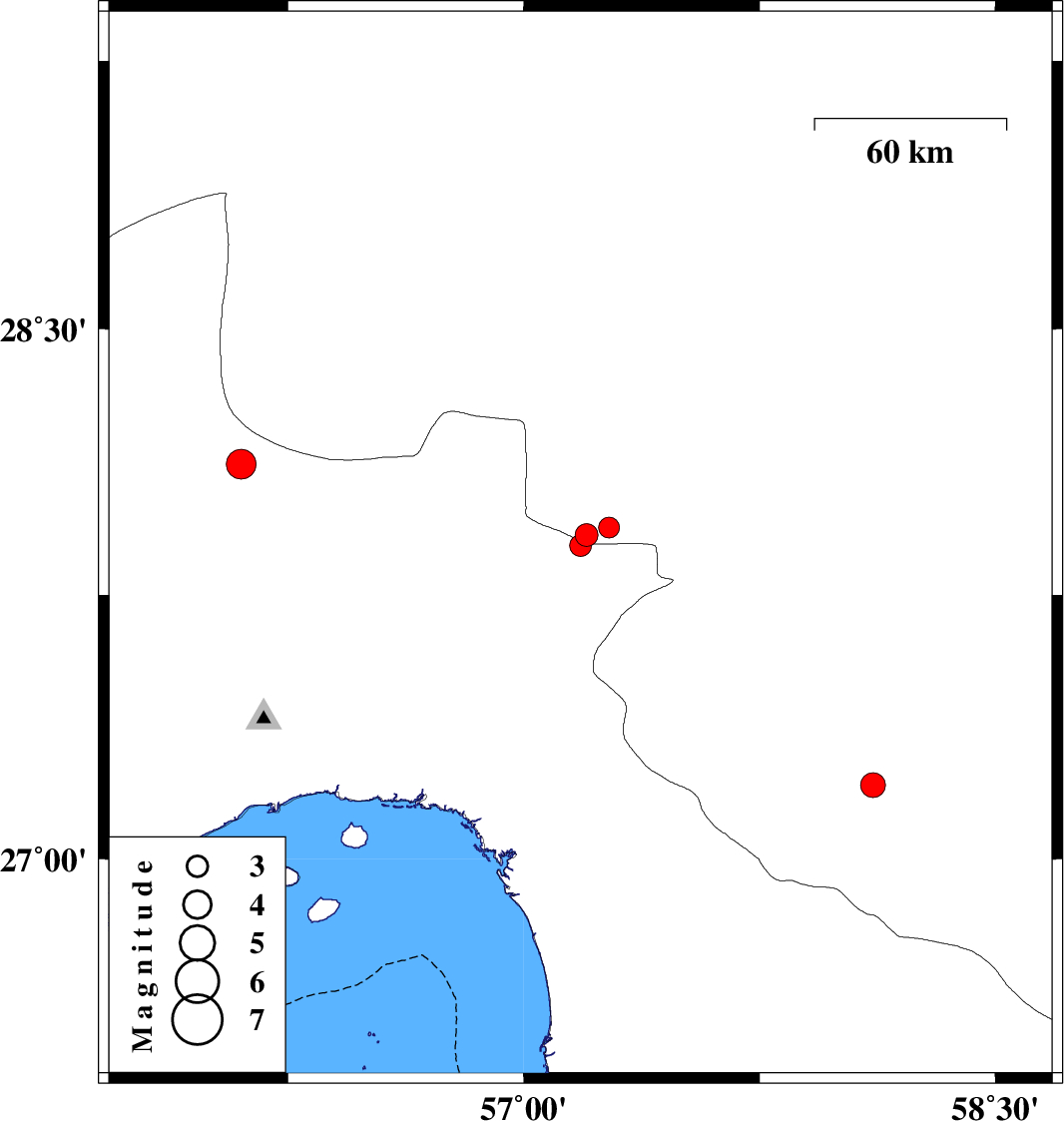 2021/01/25 20:23:48.1 23:53:48.1 27.9457.2710 ML:3 Kerman Province, 42 km -West of Kahnuj