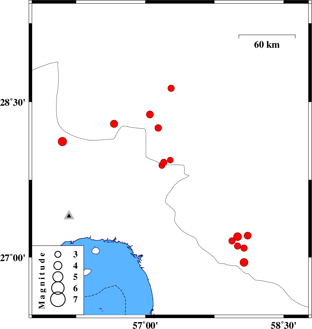 2021/01/07 05:22:41.1 08:52:41.1 27.115810 ML:3.3 Kerman Province, 60 km South-East of Manujan