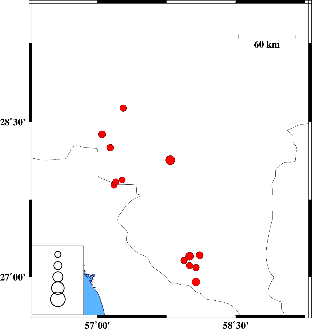 Kerman Province, 64 km North-West of Kahnuj | |