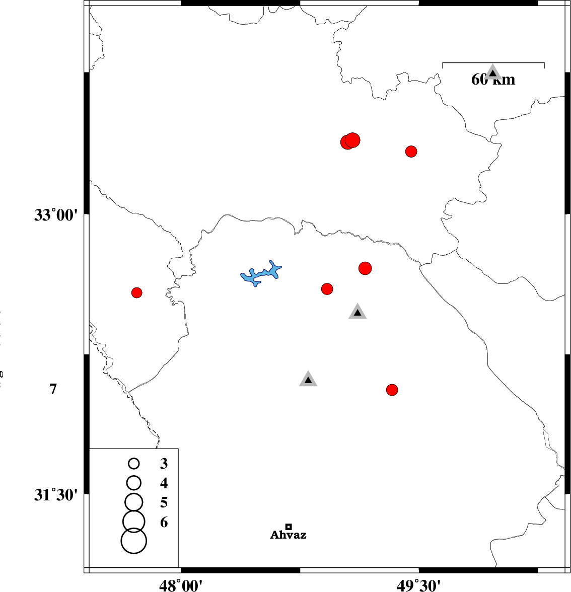 | 2021/01/28 | 09:51:45.1 | 13:21:45.1 | 32.6 | 48.92 | 12 | ML:3.2 | Khoozestan Province, 29 km North-West of Lali | ||