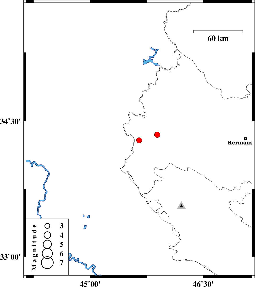 | 2021/01/29 | 14:03:22.2 | 17:33:22.2 | 34.29 | 45.65 | 10 | ML:3.3 | Kermanshah Province, 26 km South of Qasr-E-Shirin | ||