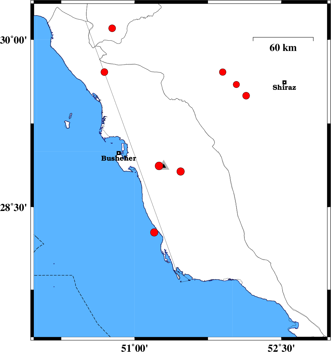 2021/01/05 | 13:20:03.5 | 16:50:03.5 | 29.71 | 50.69 | 25 | ML:3.2 | Bushehr Province, 23 km North-East of Bandar-e genaveh | ||