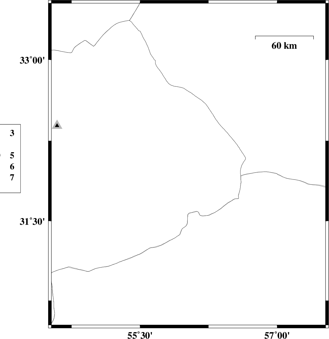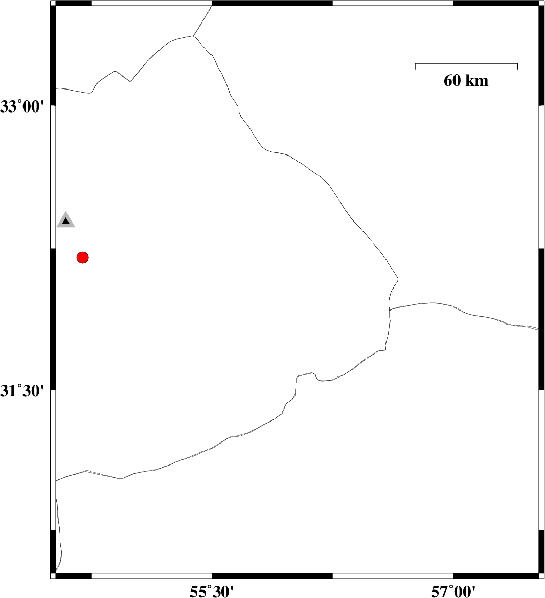 | 2021/01/31 | 00:04:30.5 | 03:34:30.5 | 32.02 | 56.03 | 10 | ML:3.5 | Yazd Province, 76 km North-East of Bafq | ||