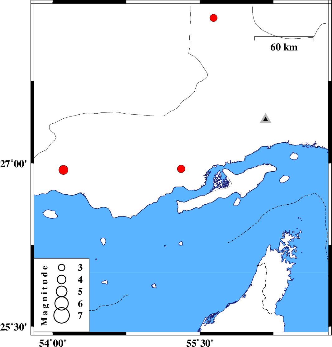 | 2021/01/30 | 09:31:09.9 | 13:01:09.9 | 26.95 | 55.31 | 21 | ML:3.5 | Hormozgan Province, 66 km North-East of Bandar-e lengeh | ||