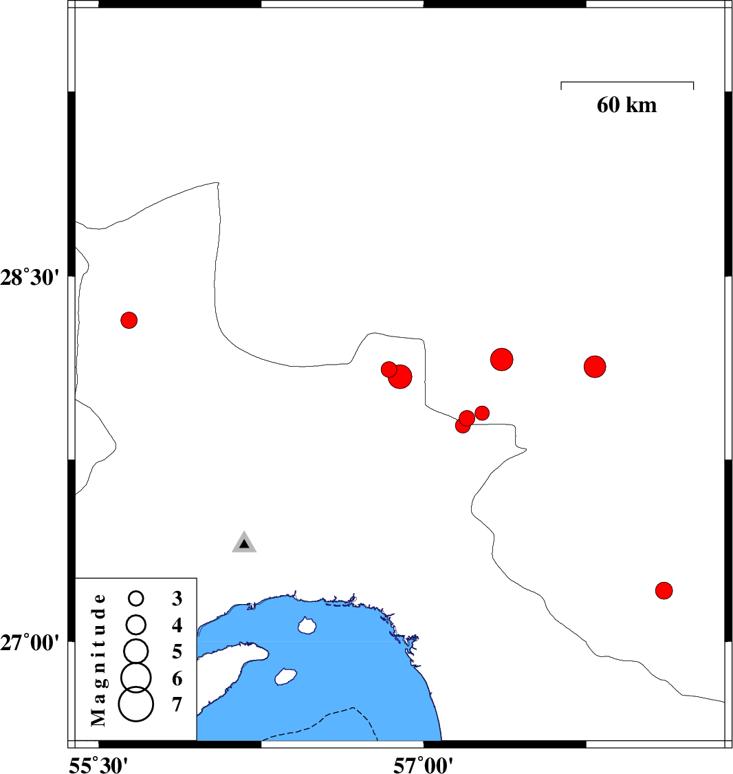 2021/01/25 20:23:48.1 23:53:48.1 27.9457.2710 ML:3 Kerman Province, 42 km -West of Kahnuj