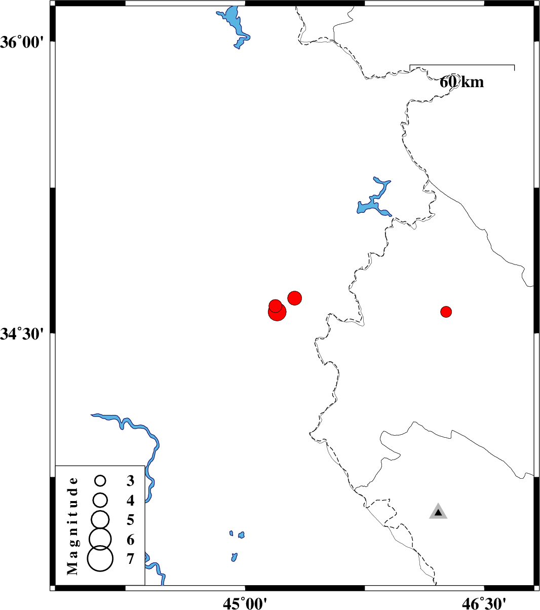 | 2021/02/12 | 05:28:29.7 | 08:58:29.7 | 34.68 | 45.31 | 25 | ML:4 | Iraq, 31 km North-West of Qasr-E-Shirin | ||