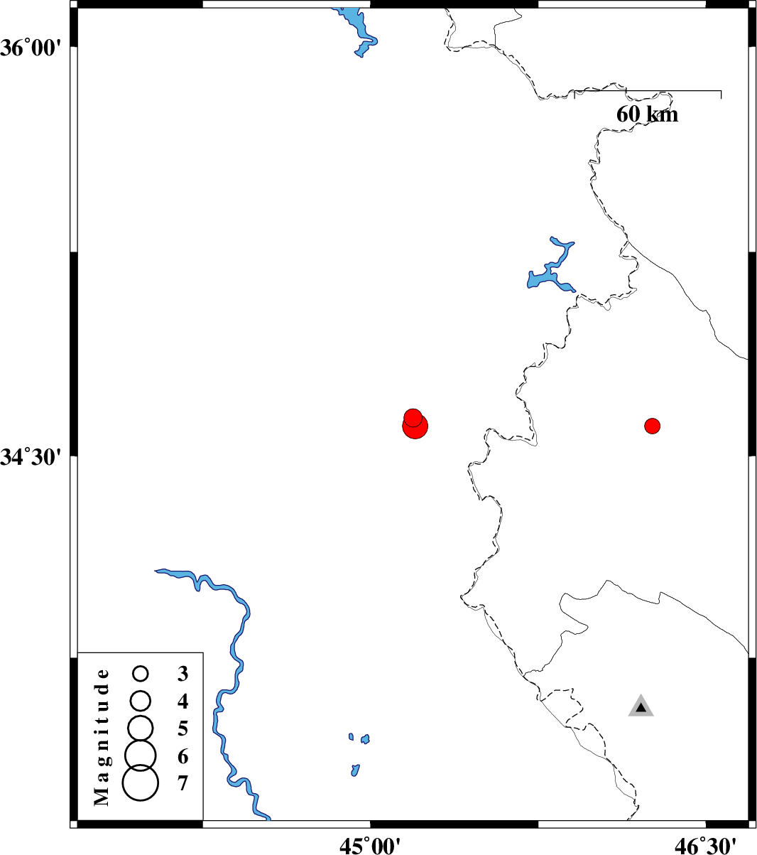 | 2021/02/06 | 23:37:01.4 | 03:07:01.4 | 34.61 | 46.26 | 10 | ML:3.1 | Kermanshah Province, 30 km South-West of Javanrud |