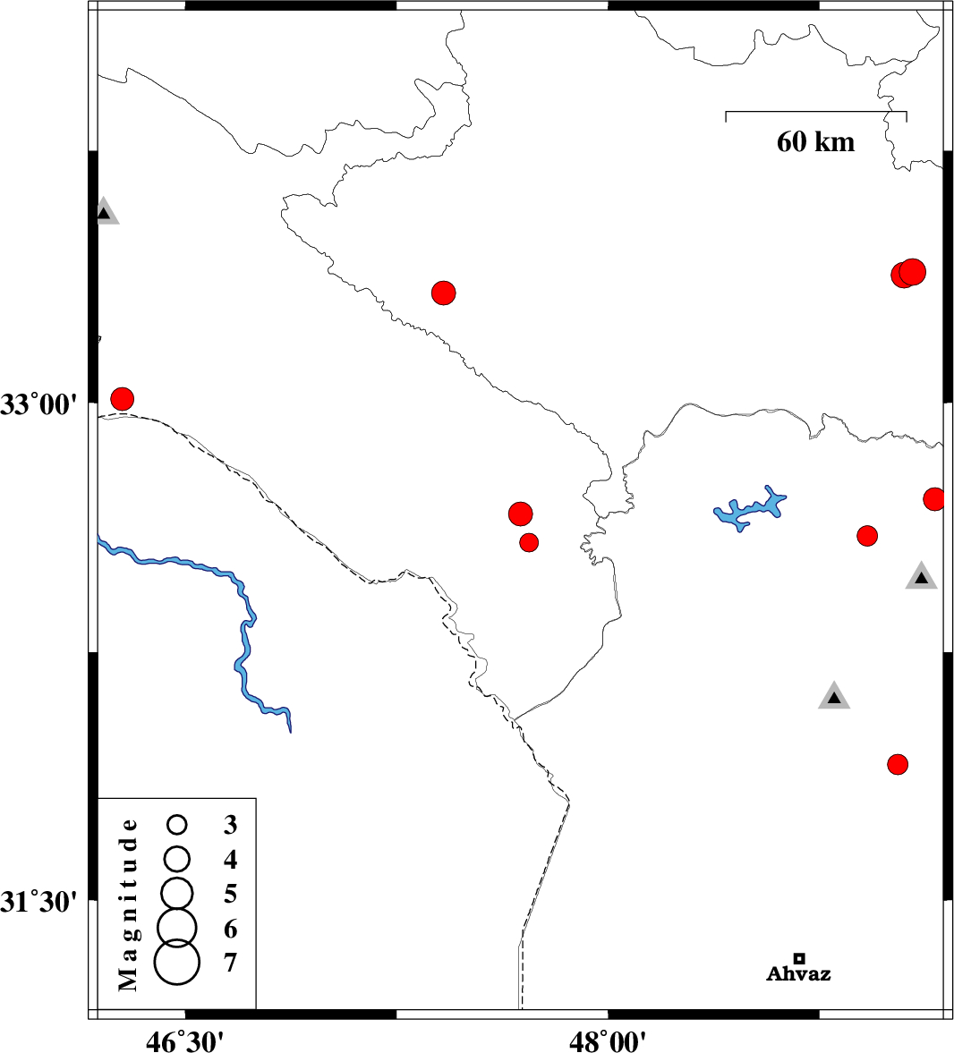 | 2021/01/23 | 09:23:56.7 | 12:53:56.7 | 32.58 | 47.72 | 23 | ML:3 | Ilam Province, 45 km South-East of Dehloran |