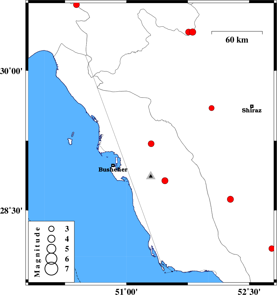 | 2021/02/21 | 11:22:57.3 | 14:52:57.3 | 29.218 | 51.302 | 13 | ML:3.4 | Bushehr Province, 11 km of Borazjan | ||