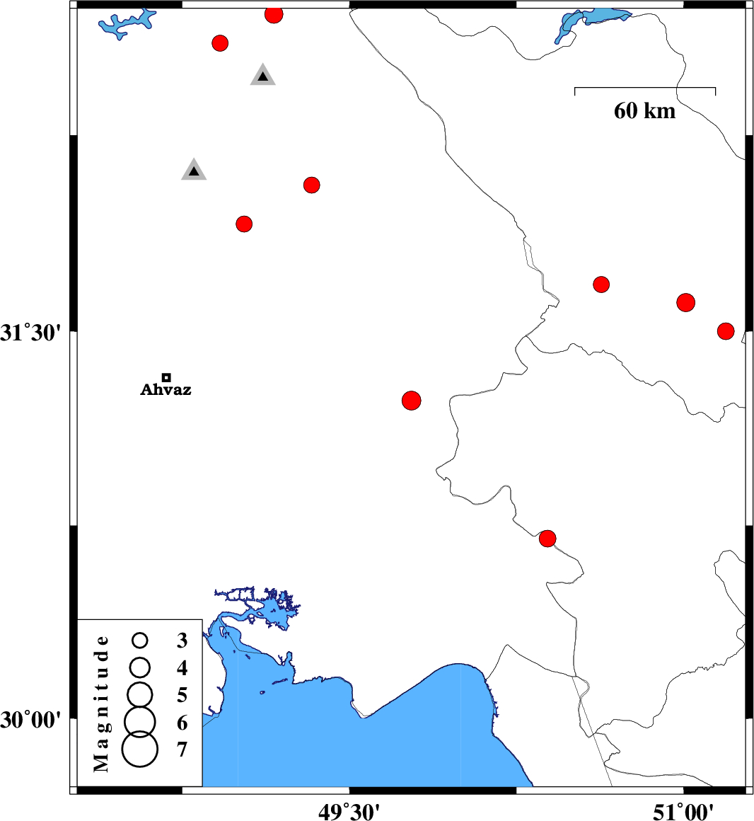 | 2021/01/24 | 08:49:11.3 | 12:19:11.3 | 32.06 | 49.33 | 10 | ML:3.3 | Khoozestan Province, 14 km North of Masjed Soleyman |