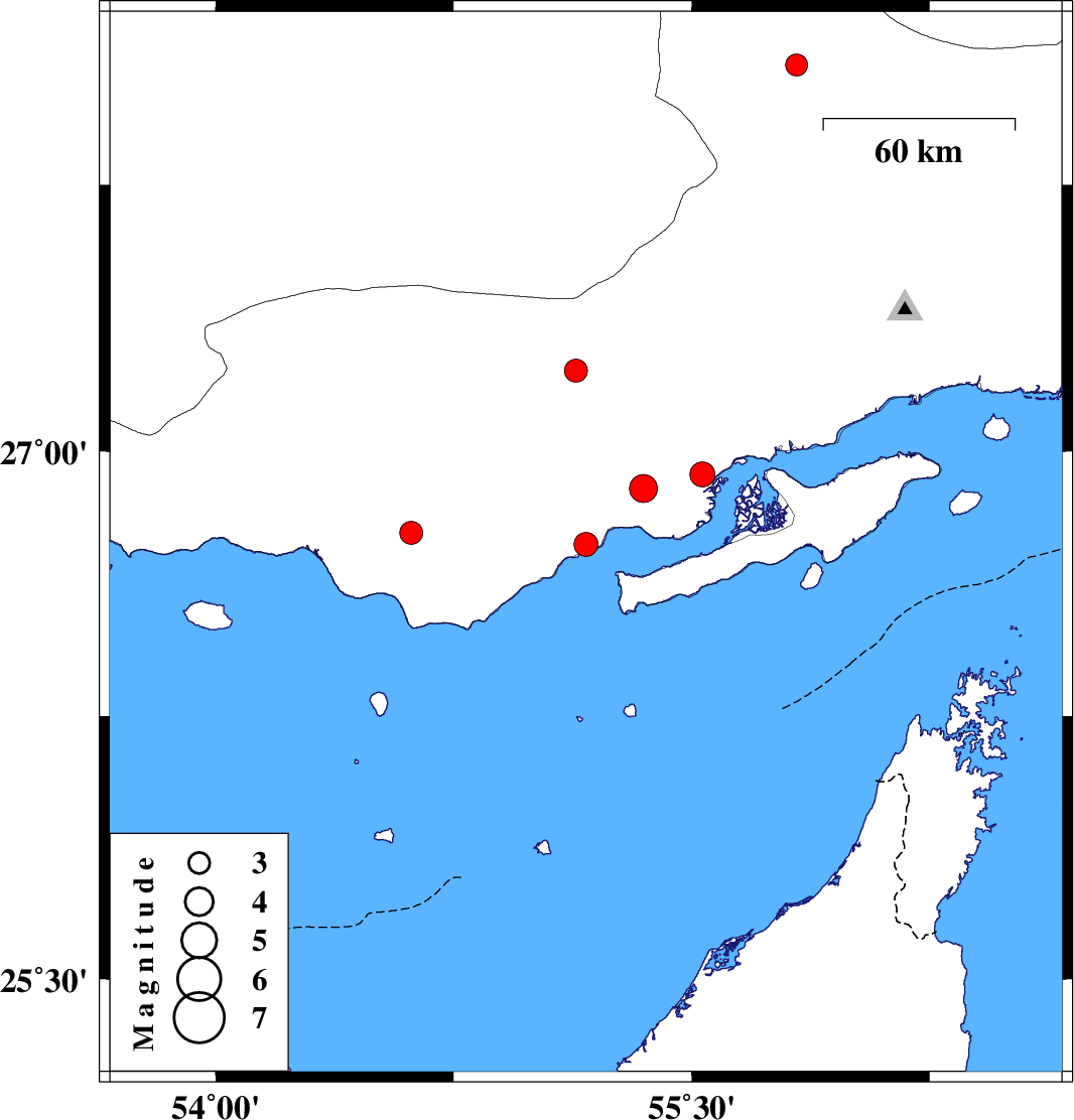 | 2021/02/24 | 00:09:58.7 | 03:39:58.7 | 26.736 | 55.167 | 10 | ML:3.4 | Hormozgan Province, 39 km North-East of Bandar-e lengeh | ||