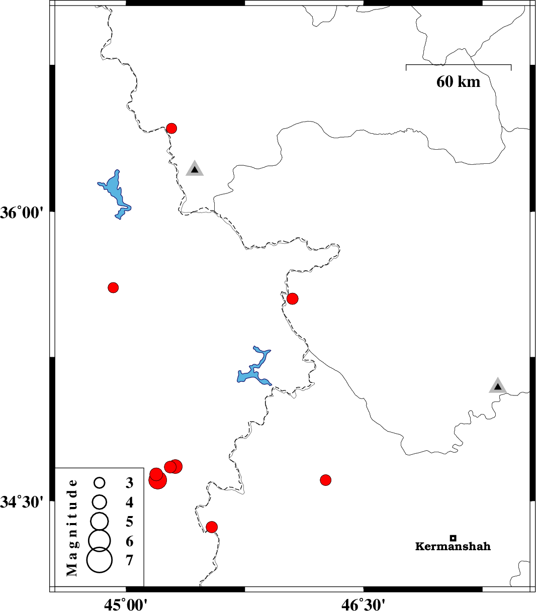 | 2021/02/06 | 23:37:01.4 | 03:07:01.4 | 34.61 | 46.26 | 10 | ML:3.1 | Kermanshah Province, 30 km South-West of Javanrud |